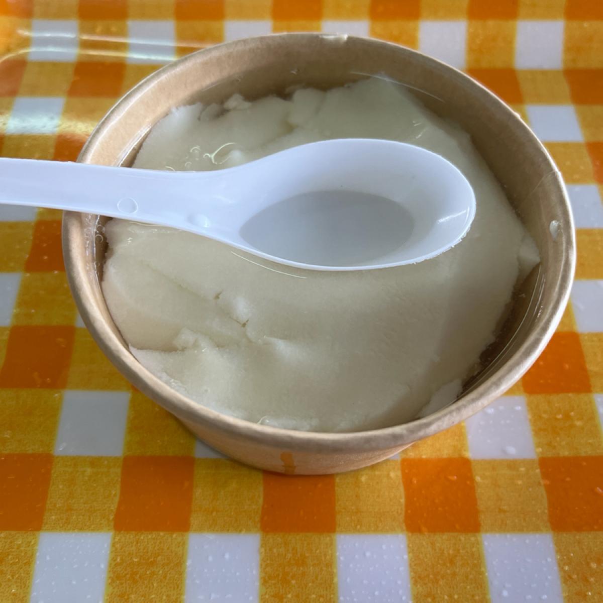豆花本身非常的軟嫩,吹彈可破,可能因為水質不同的關係,吃起來沒有台灣豆花來的甜味,但口感上就更嫩一點。每一張桌子上面都擺有花生粉,所以覺得不夠甜的可以自己加。