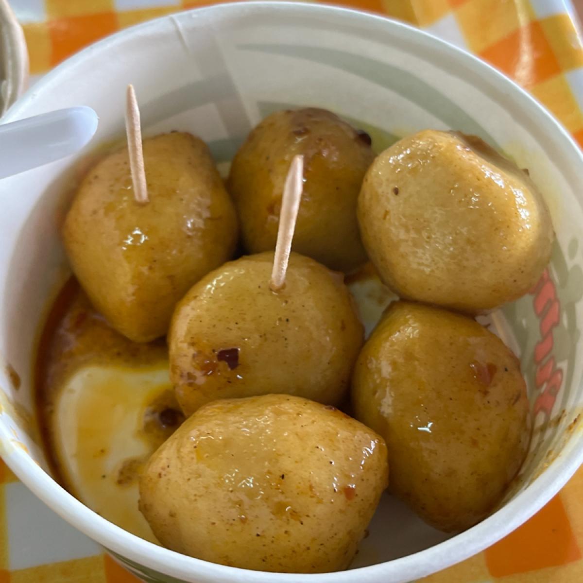 魚蛋的部分,皮本身感覺大部分是澱粉,魚漿的部分應該比較少,但是配上他的咖哩非常入口,而且會有種開食慾的感覺。如果不是剛吃完早餐的關係,應該會馬上開點澱粉類的主食。