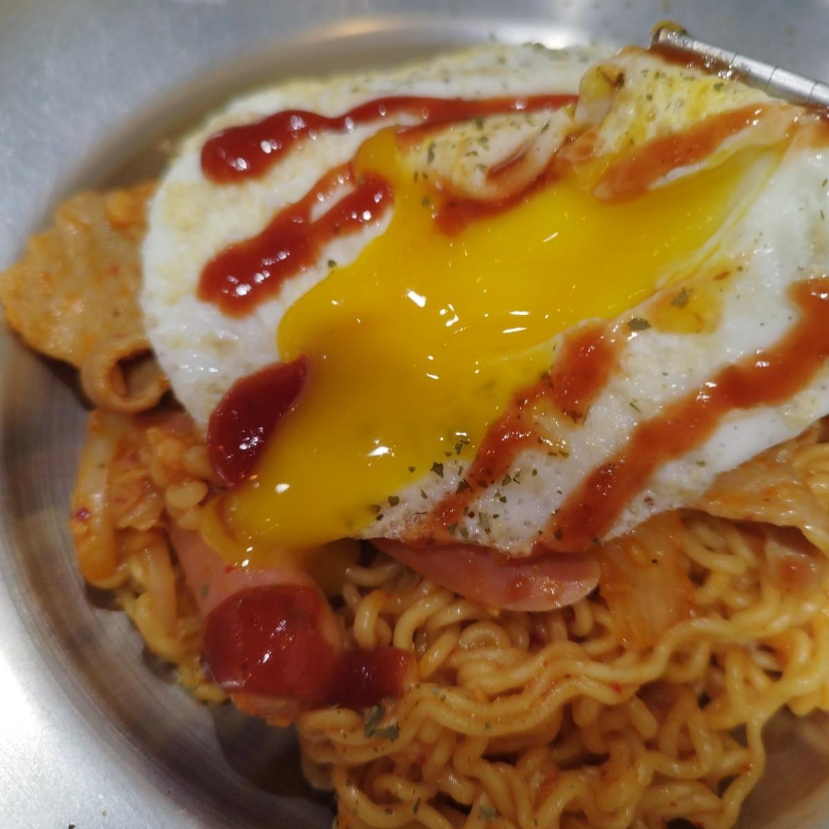 炒泡麵的蛋我想店員幫我做成半熟蛋,他們也是真的煎出了一顆很完美的半熟蛋,戳下去時蛋黃流出的瞬間看著療癒且美味。