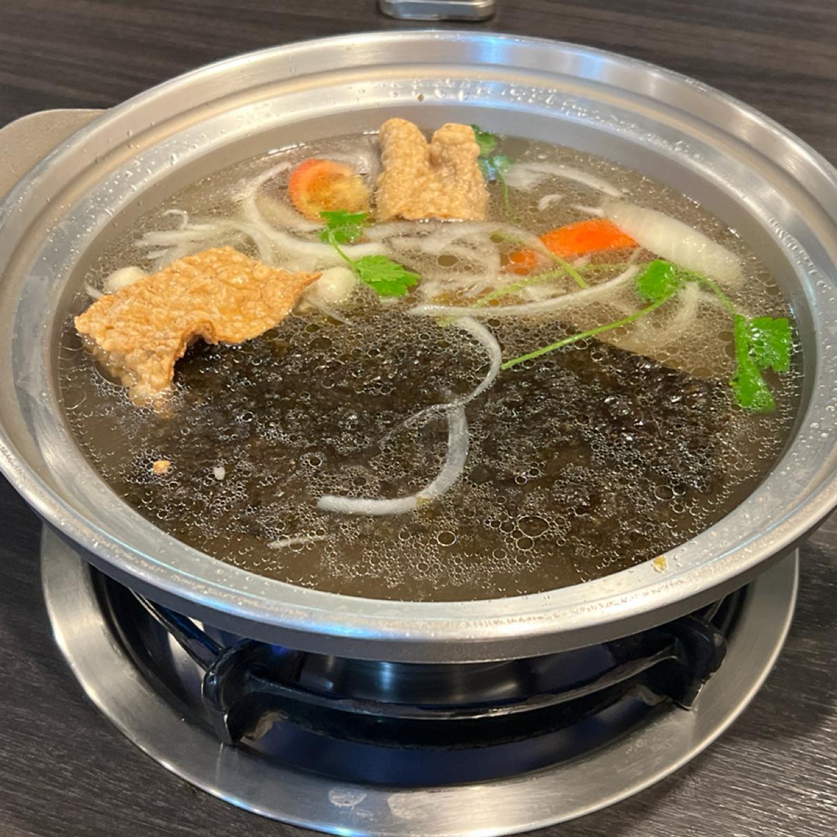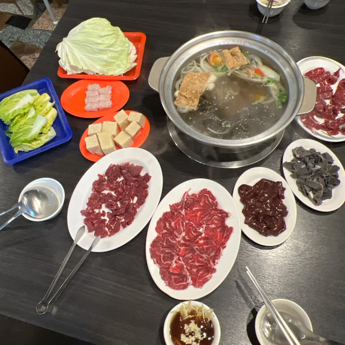 台南牛肉火鍋第一選擇~其實也只有機會吃到這間,牛骨蔬菜+海苔的湯頭,搭配的非常好也很喜歡這個味道,重點是可以訂位,因為不是在市區但至少可以確定有位子再過來用餐,一整棟環境乾淨明亮很可以。 牛肉盤不能選擇部位,但一次多點幾盤會平均給一般與好的,所以也算是滿公平的,蔬菜火鍋料都滿新鮮漂亮,擺放明確想吃啥就拿啥,搭配牛肉湯頭越吃越好吃,整體都很棒,完美。