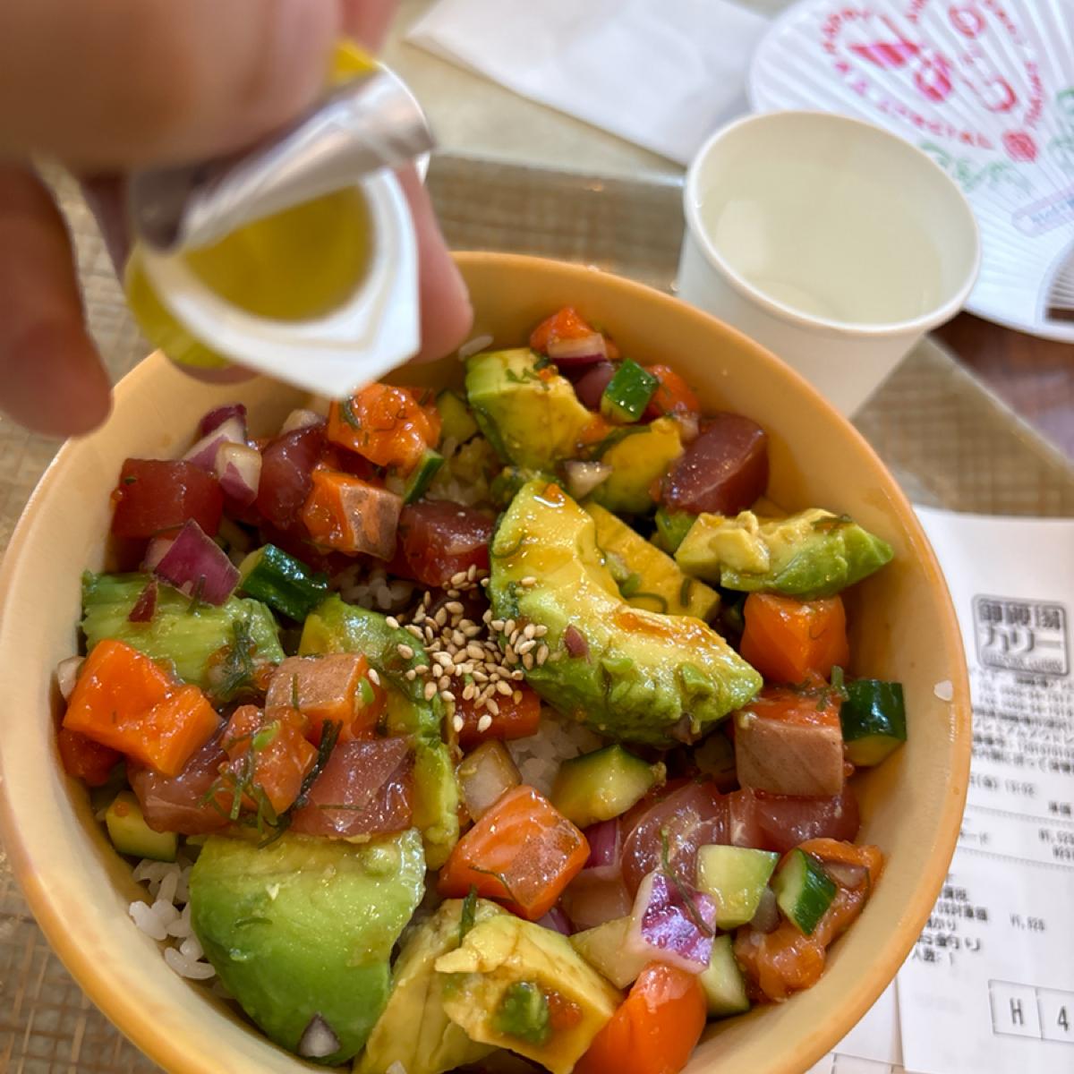 引起我們注意的招牌菜之一是酪梨生魚片蓋飯,新鮮的生魚片級魚和酪梨的奶油味和諧地融合在一起。