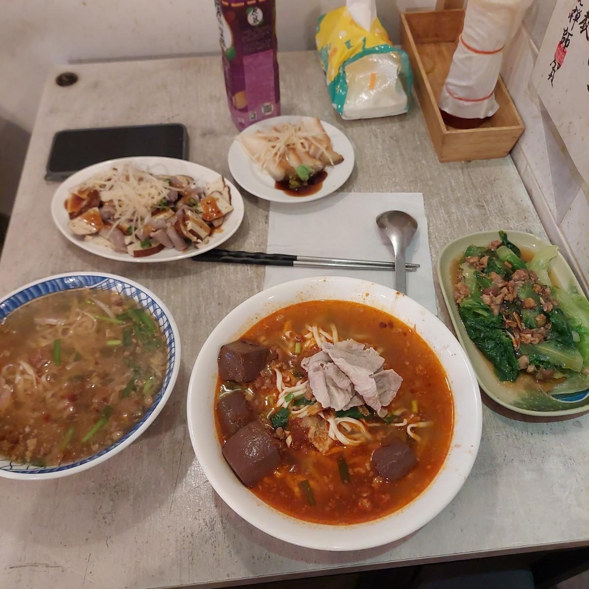 今天享用的是肝連麵、麻辣麵、鯊魚煙、大黑豆干、粉腸、燙青菜,合計約350元左右。