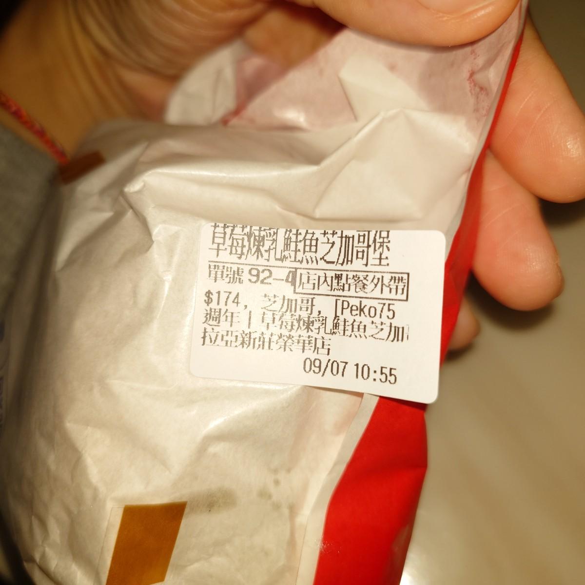 裡面的鮭魚一樣厚,草莓醬第一口就吃的出來(還沒吃到鮭魚),當下想法就是草莓醬不錯,想吃看看草莓香蕉捲餅XD