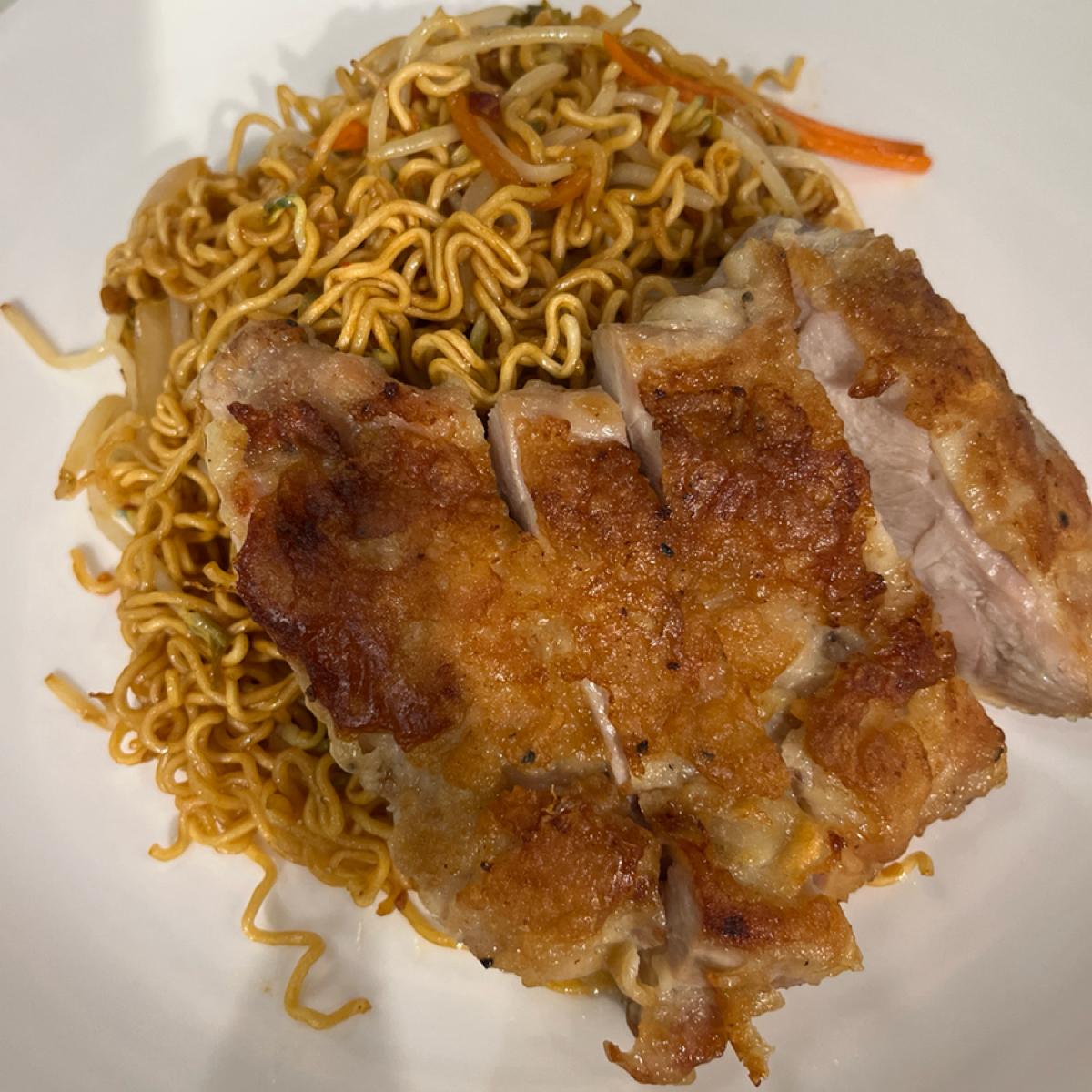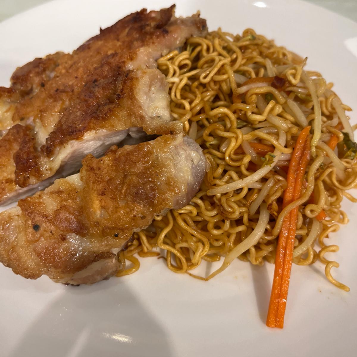 雞排很大塊也是很厚實,公仔麵炒的很好吃,麵條屬於偏硬我喜歡吃硬的麵條,整體來說還蠻滿意的一道菜。