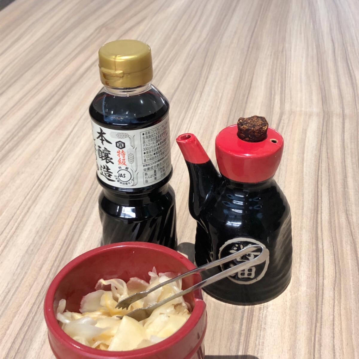 另外飲料跟其他迴轉壽司比較不同的是,並非架設在桌邊自己加茶包或茶粉的綠茶,而是自己取用的冷熱飲自助吧,既有中式酸梅湯、蜂蜜菊花茶、仙草甘茶,也有西式的咖啡拿鐵等任君選擇。