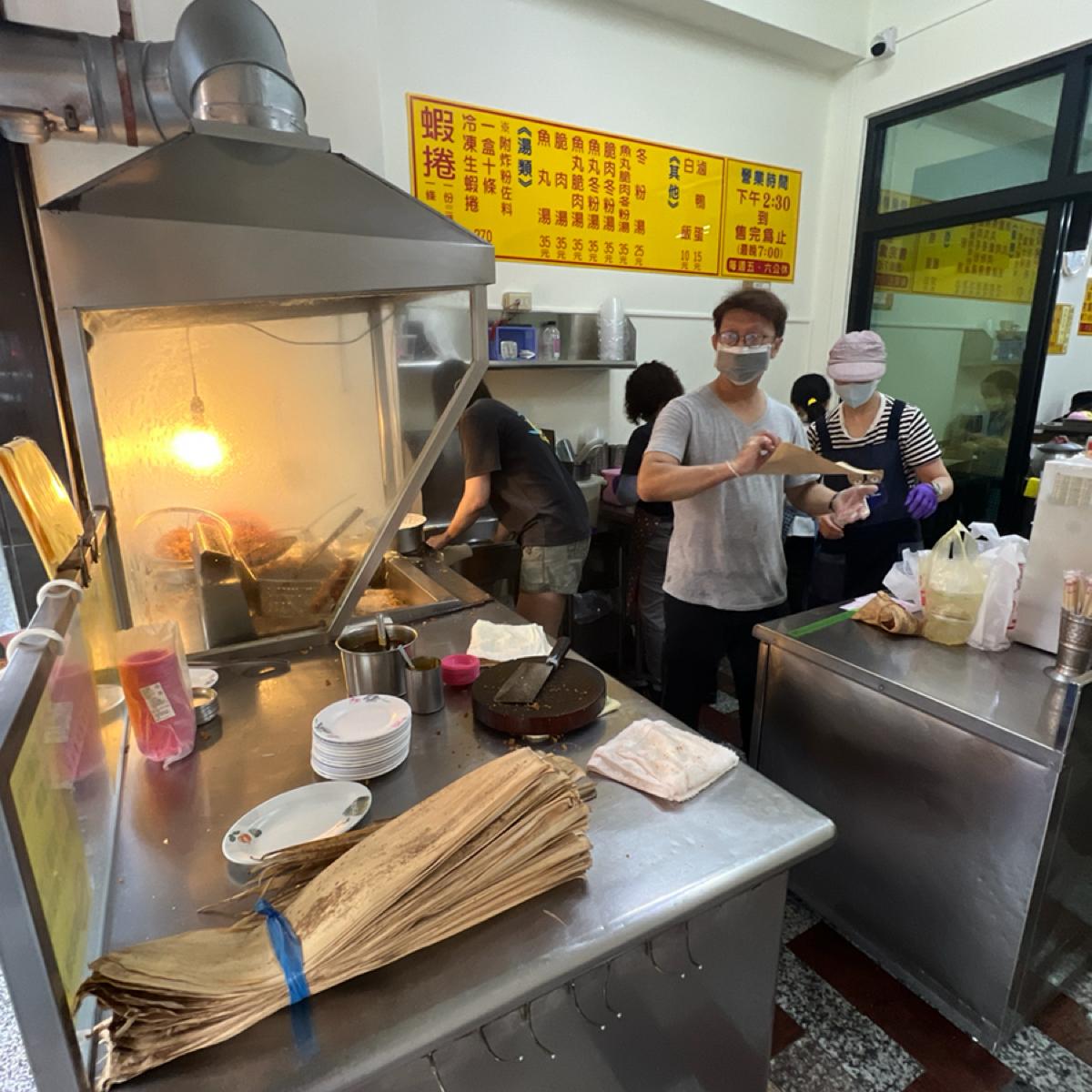 生意很好有一位專門負責一直炸蝦卷,完全沒有停過,外帶蝦卷要二份才有用荷葉包,這次內用點了一份蝦卷吃,搭配傳統偏甜沾醬加上微嗆黃芥末,真材實料熱熱吃真香。別桌很多感覺都是在地老主顧,一看就是吃了幾十年了,而且除了蝦卷其他餐點價格也都非常佛心,下次有機會也想吃看看,感覺就是平價美食。