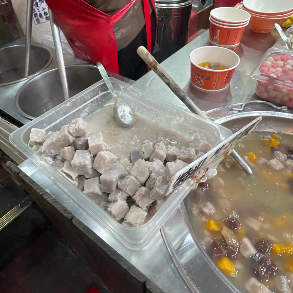 在門口點餐,點好餐一下子就出餐了,自行拿去裡面內用,覺得走道不寬再加上有坐人要避開有點難走,笨手笨腳的人(我)很容易弄翻,個人認為內用環境不太方便,但工作人員態度還不錯,不好意思麻煩他們清潔了。 點了招牌芋頭熱湯+綜合芋圓,對我來說吃起來不甜,感覺要再甜一點點,湯感覺味道偏淡,但芋頭口感不錯,芋圓有不同口味的,吃起來還ok,但覺得價格部分有點不便宜。