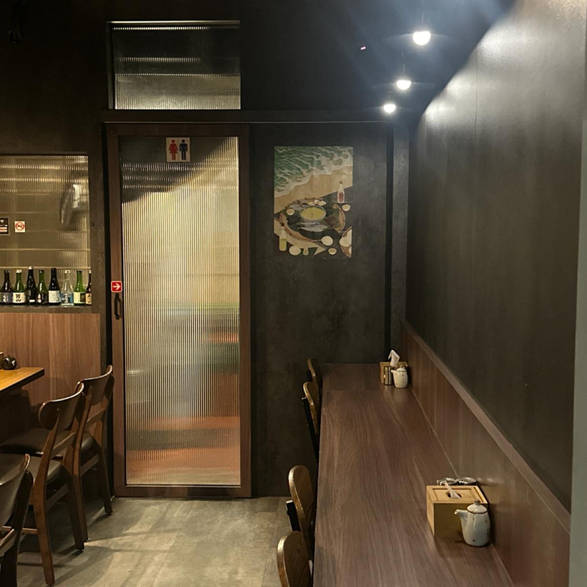 蔵鵡酒場為老屋結構的狹長屋型,前廳為板前座位區,採用開放式廚房,一樓後面的座位區,烹煮的時候煙霧會明顯有感,2樓前後房間,細分6~8人包廂、10~12人包廂區,採預約制,沒有低消限制。