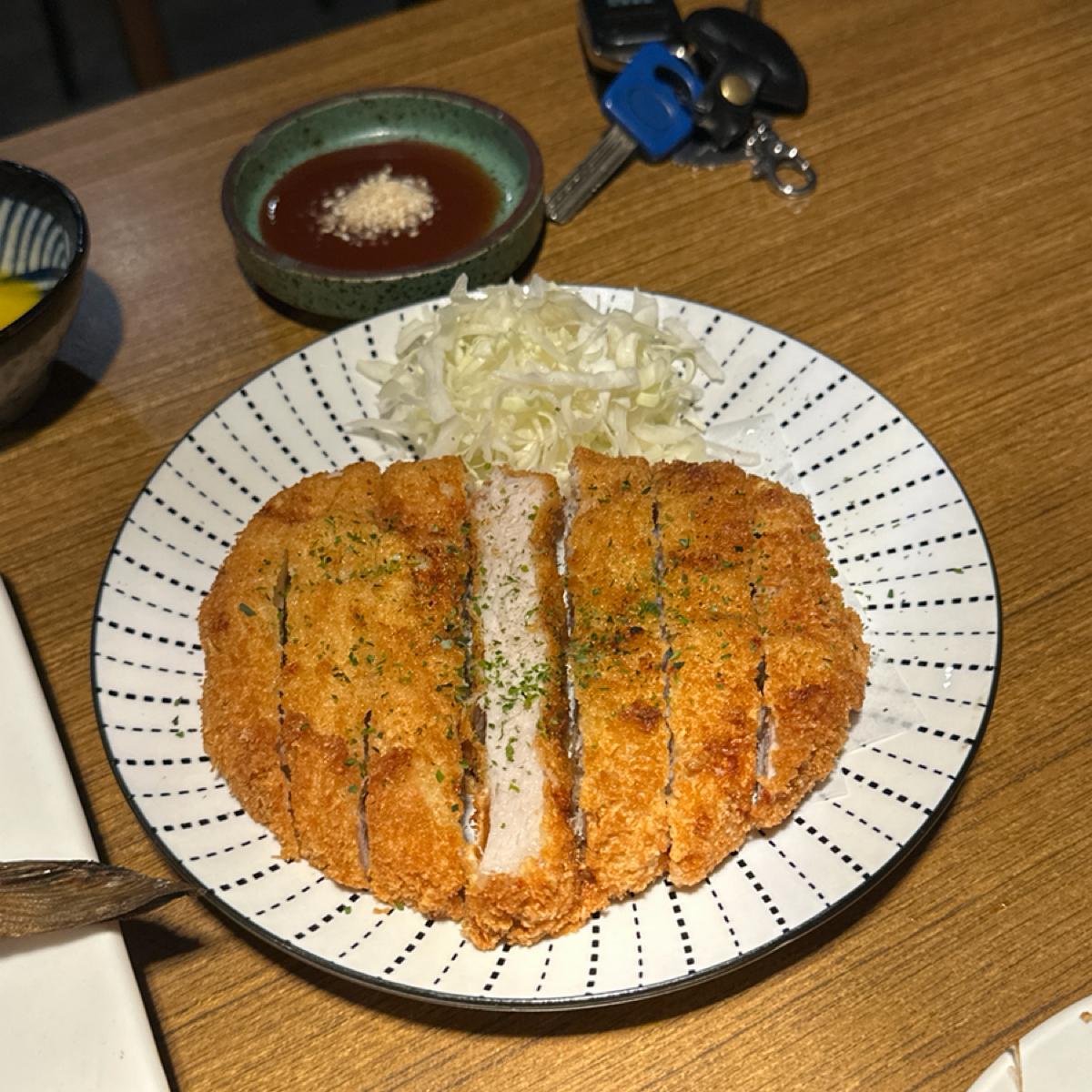 被我們譽為目前吃過最不優的豬排,可能是因為豬排的筋斷的不太乾脆導致豬排的口感偏硬,需要稍稍費力的程度