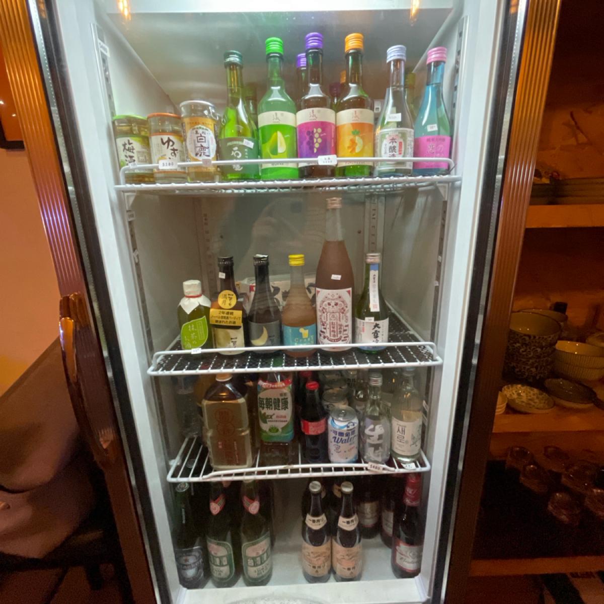 飲料酒水除了生啤酒需要在櫃檯點以外,其他的品項都可以自己在冰箱裡面自取,冰箱旁邊有許多不同大小碗盤、餐具,要自行取用。