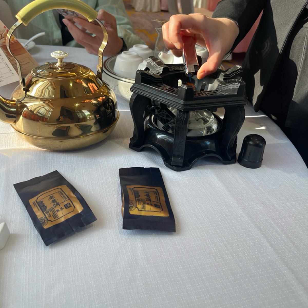 不是單純由服務生上熱茶,而是一旁有明火再煮水