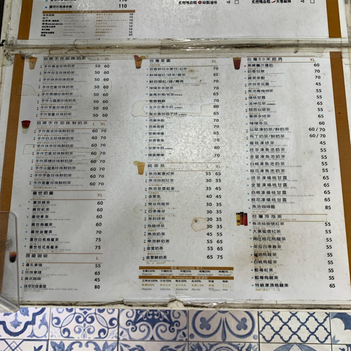 點了魚池鮮奶茶(L)1 分糖微冰,冰卻佔杯六成之多,底部糖未攪勻。其茶味薄,稱不上香醇,鮮奶比例尚屬適中,亦稱不上濃郁,僅能給予普通評價。