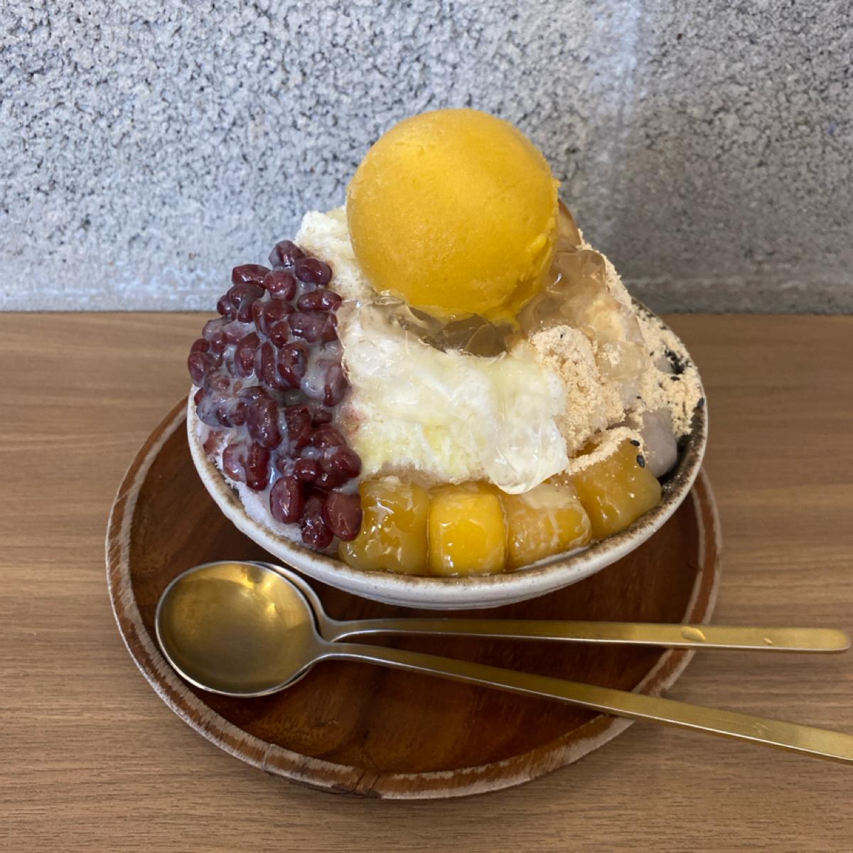 我們點的是 麵茶牛乳雙拼刨冰和抹茶紅豆刨冰 原先沒有想加冰淇淋的 但聽到是芒果和檸檬(聽說每天都不一樣)就加了 吃完只能說很適合再來吃一次,因為我朋友的 *抹茶冰從頭到尾都是綠色的,而且他的配檸檬冰淇淋絕配,紅豆也給超足的上面的湯圓也很好吃 我自己的 *麵茶牛乳雙拼,我搭配芒果的也是很好吃,麵茶粉灑在上面點綴也很搭,上面的蒟蒻和芋圓,也是蕭齁呷 推推推推推推推