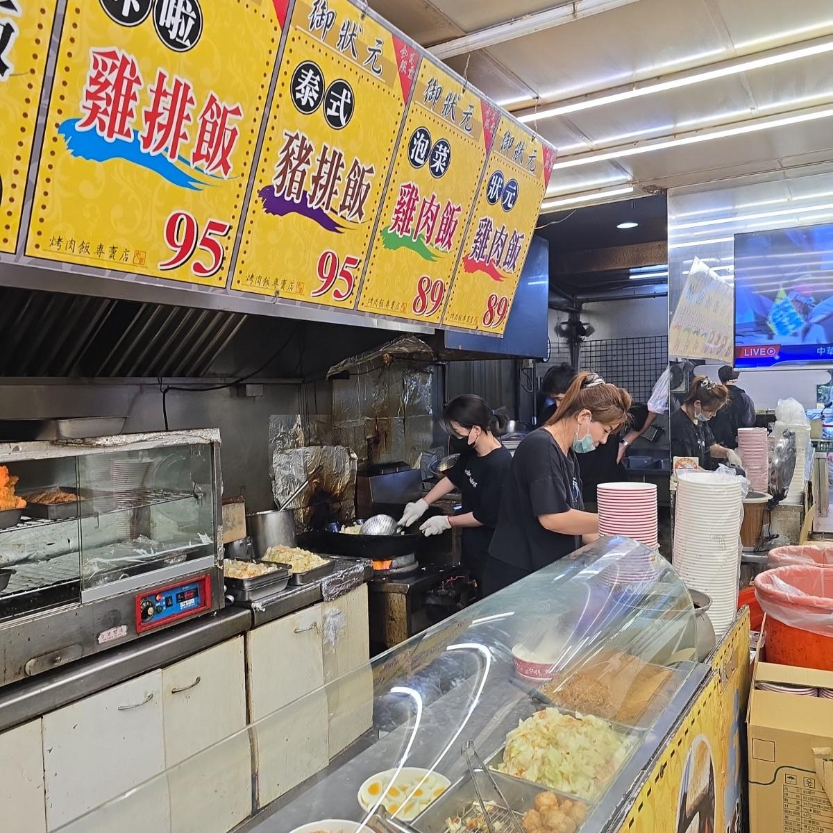 御狀元烤肉飯專賣店位於站前新光三越正後方的許昌街上,大塊黃色底的招牌設計相當搶眼,菜單安排則簡單大方。