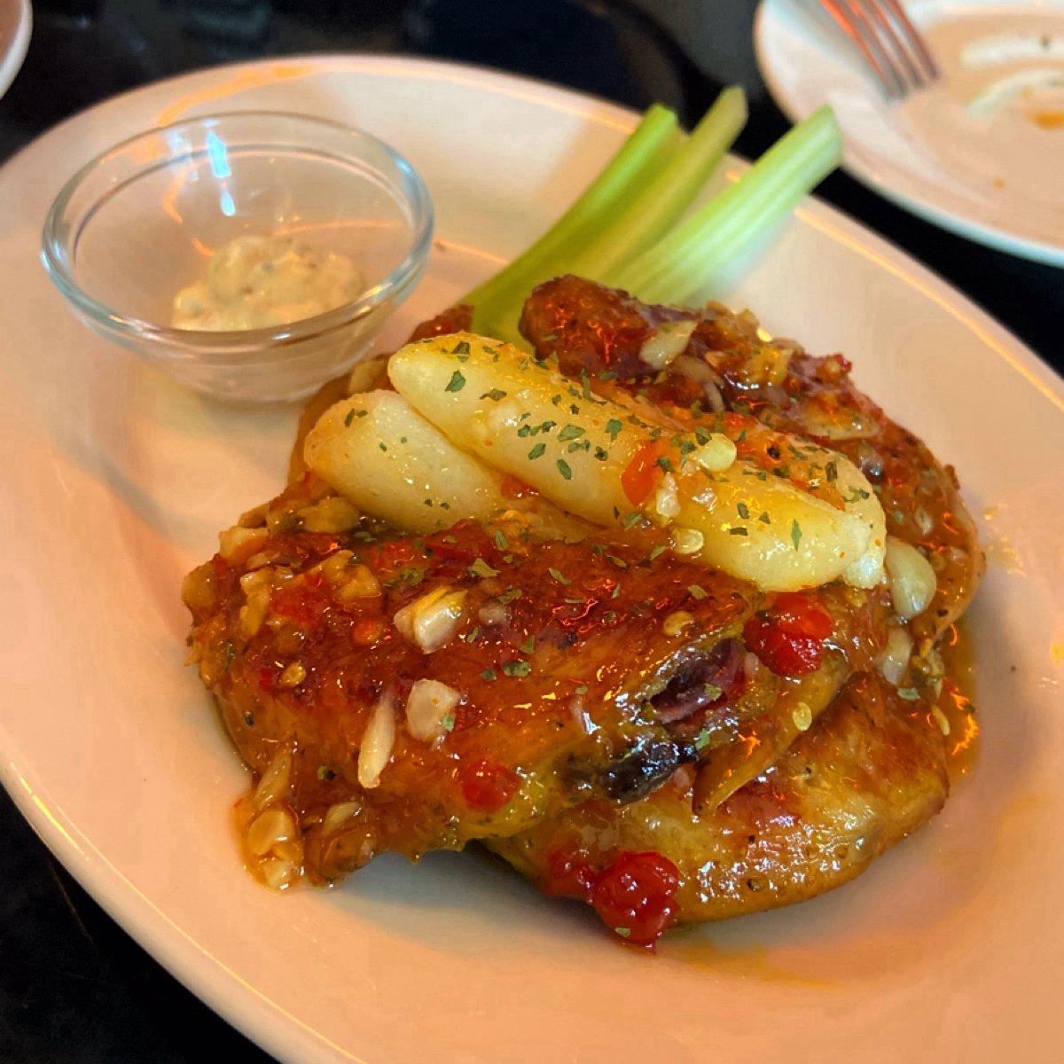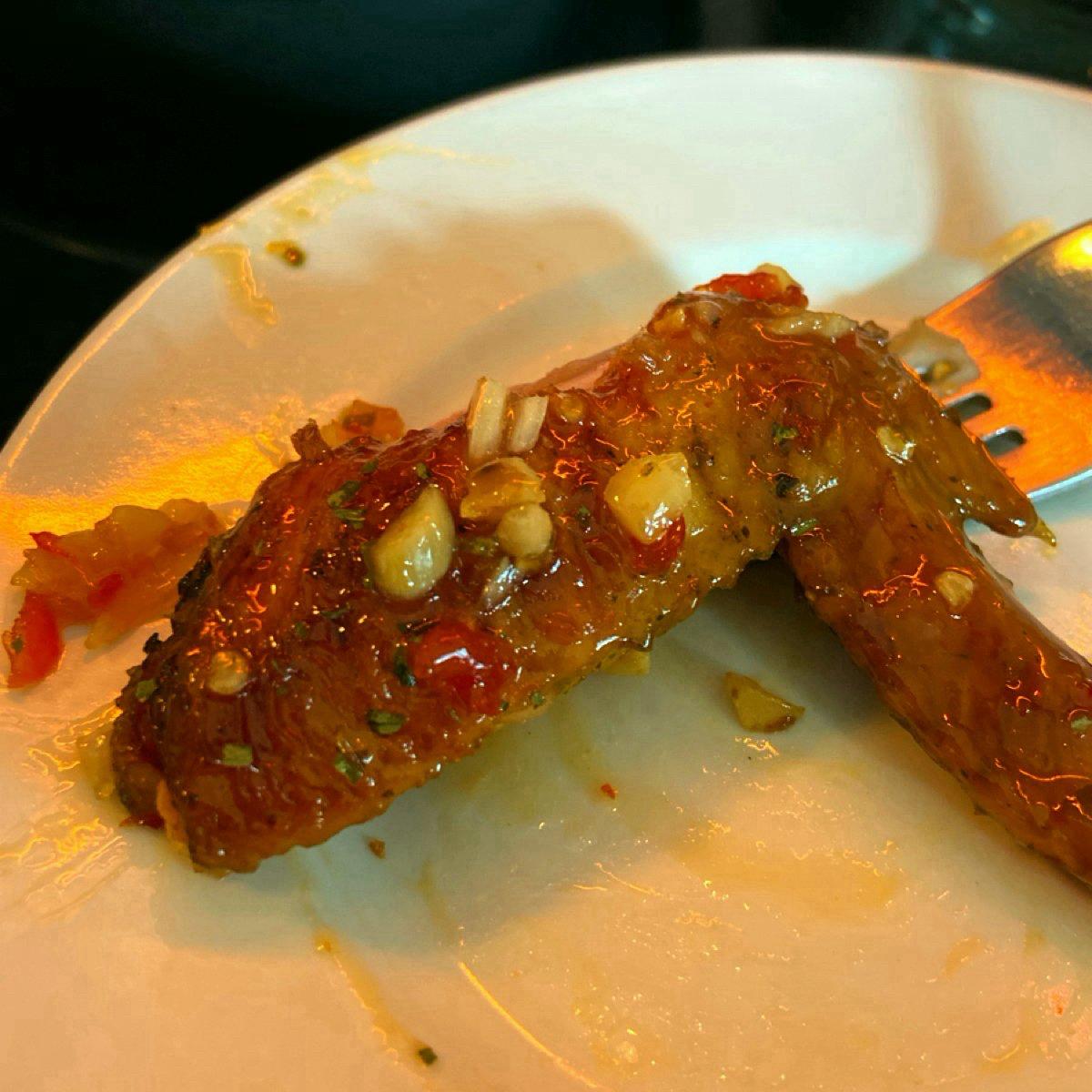 本來以為這個會是像水牛城辣雞翅的那種酸味雞翅,結果是泰式的酸甜味,除了辣椒外還帶有蒜頭顆粒,很好吃。年糕也炸得很有嚼勁。這道也推薦👍