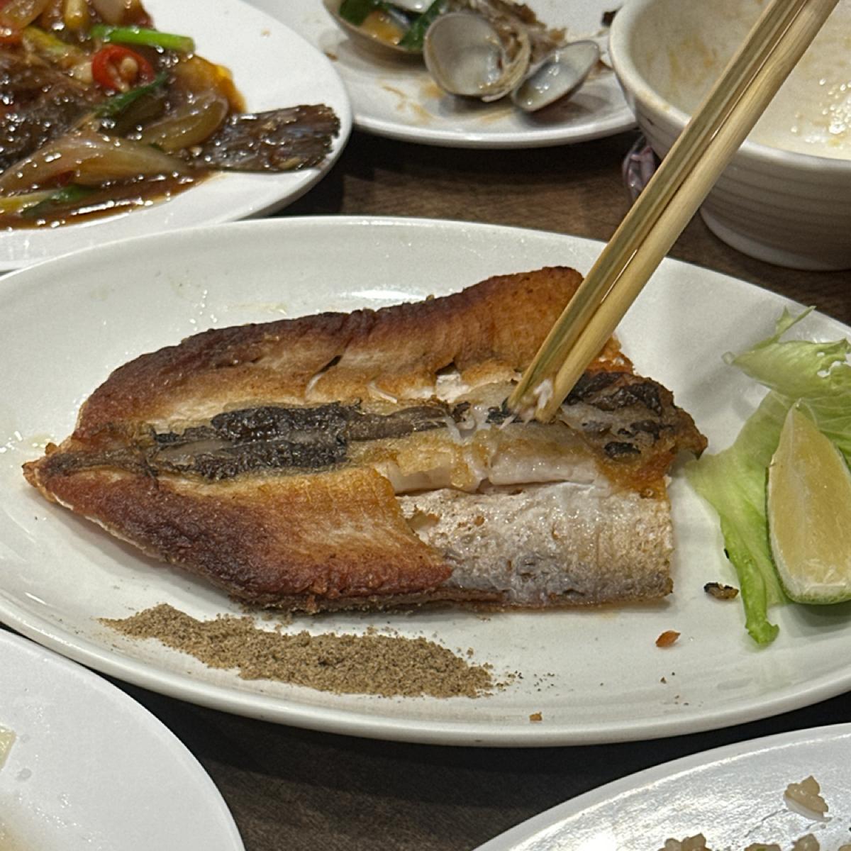魚肚肉煎的外皮酥酥扎實不滴油的,但我個人更愛濕潤一點的。