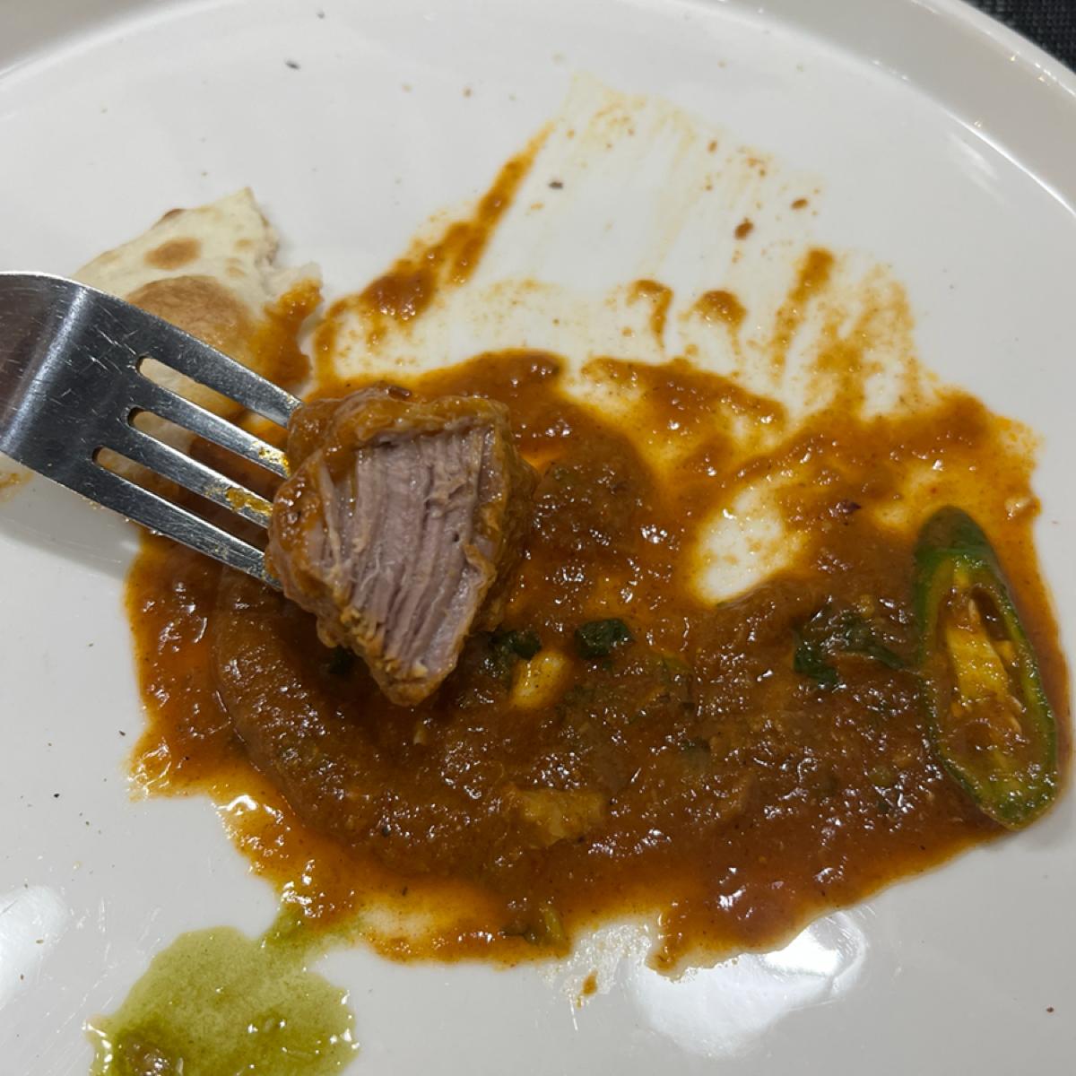 主食我們選了 《Gosht Rogan Josh》香料羊肉咖哩,這道令人驚豔,羊肉燉煮得極為軟嫩多汁,完全沒有腥味,咖哩醬料濃稠且份量大方,風味醇厚、帶有紅椒與多種香料的辛香感,值得推薦的招牌之一。