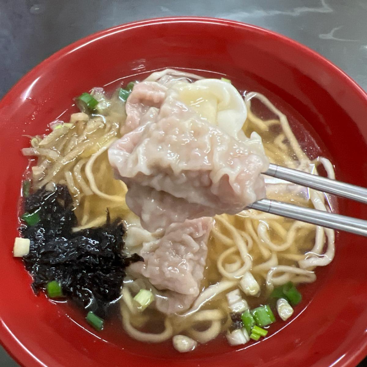 因為是臨時找的,所以其實就秉持著出外人吃個粗飽就好的想法,餐點有三顆大餛飩、酸菜與一些紫菜,麵條的麵體略寬非細麵,吃起來Q彈有勁。