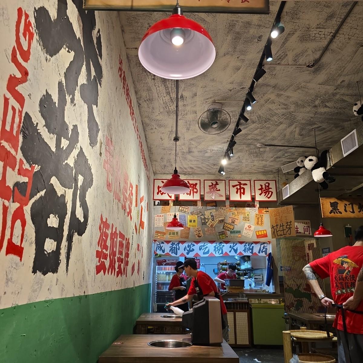 龍門陣四川火鍋位於八德路四段,最近的捷運站是南京三民,店家外觀非常浮誇,店內裝潢也充滿樂趣。