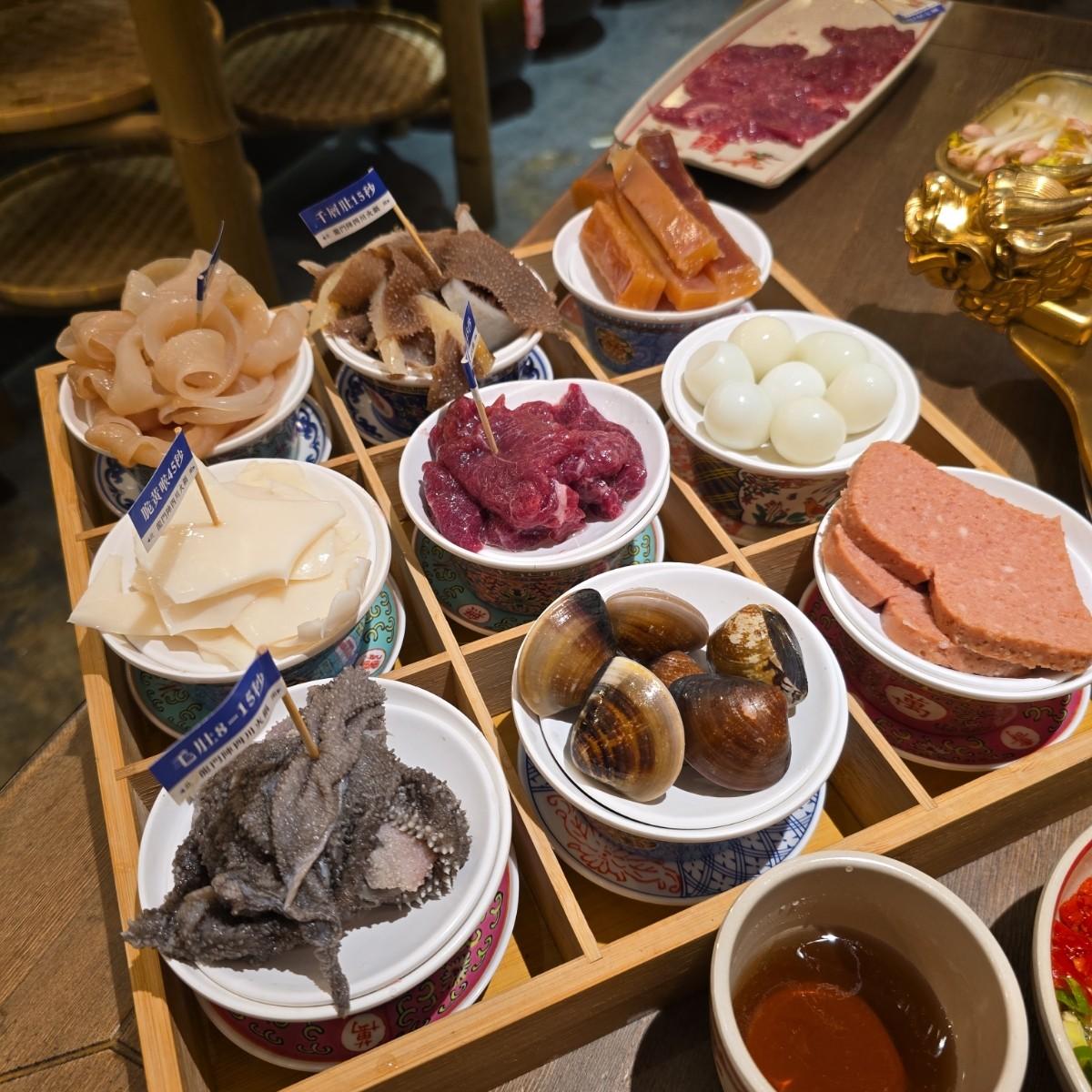 今天的是:「黃喉 (豬心管)、鮮毛肚、千層肚、嫩牛肉、鴨腸、魷魚、鵪鶉蛋」