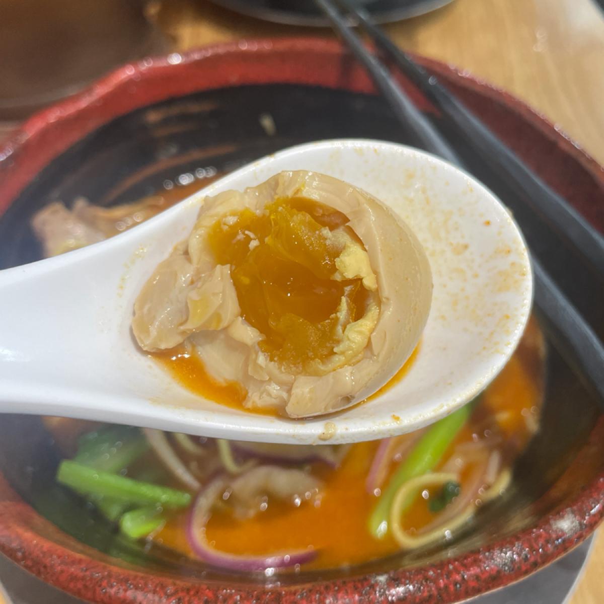 除了豬叉燒、綠色蔬菜、洋蔥外,還放了非常多的豆芽菜,另外有給一整顆溏心蛋,原本不抱期待,但溏心蛋意外地非常好吃,熟度很剛好,吃一口整個瞳孔震動