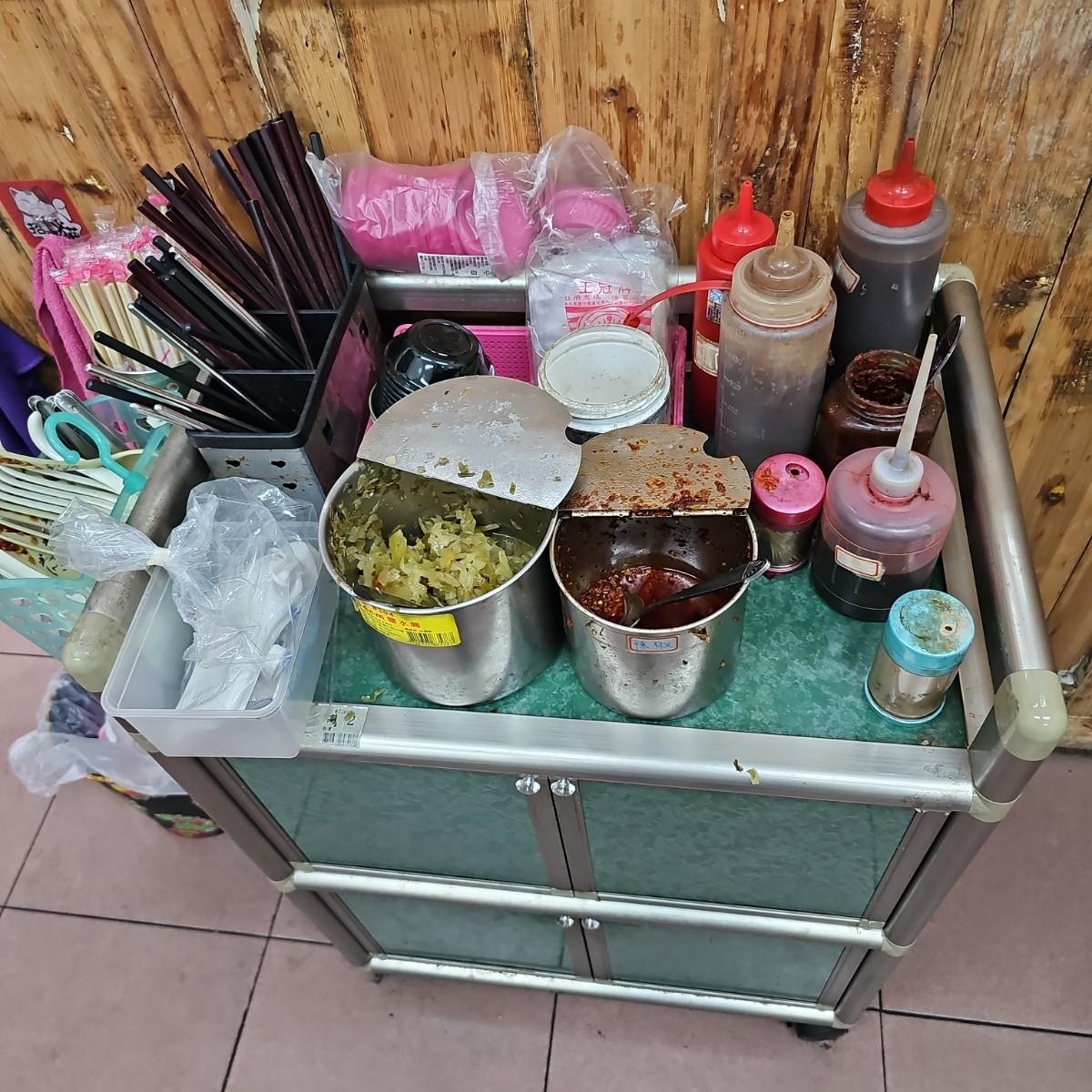 就是傳統麵店格局,但老闆和老闆娘很愛乾淨,完全沒有碗盤堆積、桌子沒擦的情況,這種老式木頭桌完全不會黏,老闆人很好,憨厚老實,看到他們夫妻小吵架不用擔心,馬上就和好了。