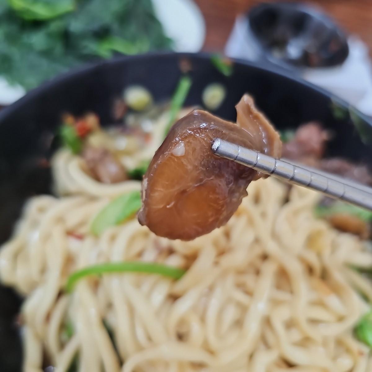 我點乾麵的話都會跟店家說燙青菜不用滷汁,拌進麵裡吃就很有味道,很乾淨的地瓜葉,應該是老闆每天早上在旁邊市場買的,都沒有爛或黑的地方,份量也超大,大約是其他店家1.5倍以上的量