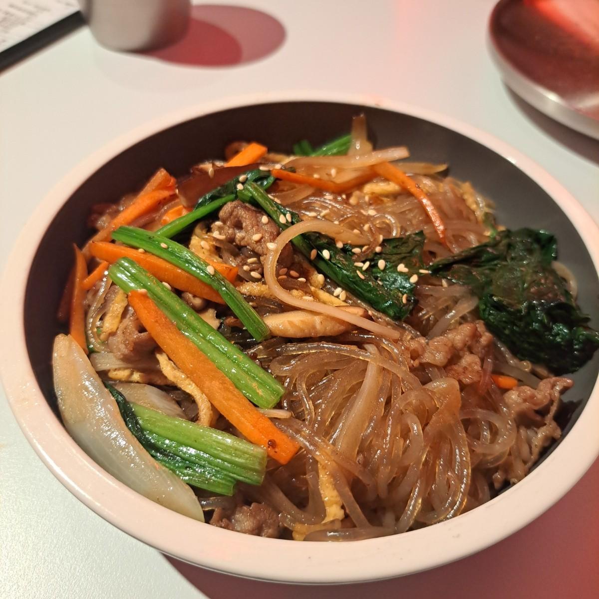 最後來到了因為吃不飽多點的牛肉雜菜冬粉,真的只能說,幸好吃不飽,不然就點不到這道了,真的是好好吃呀,堪稱今日最好吃,冬粉與韓式香油、野菜跟烤牛肉一起拌煮,烤牛肉豐富的油脂和香氣全部被冬粉吸收變成精華,難以言喻,只想一直吃一直吃......推薦有來得話一定要吃吃看!