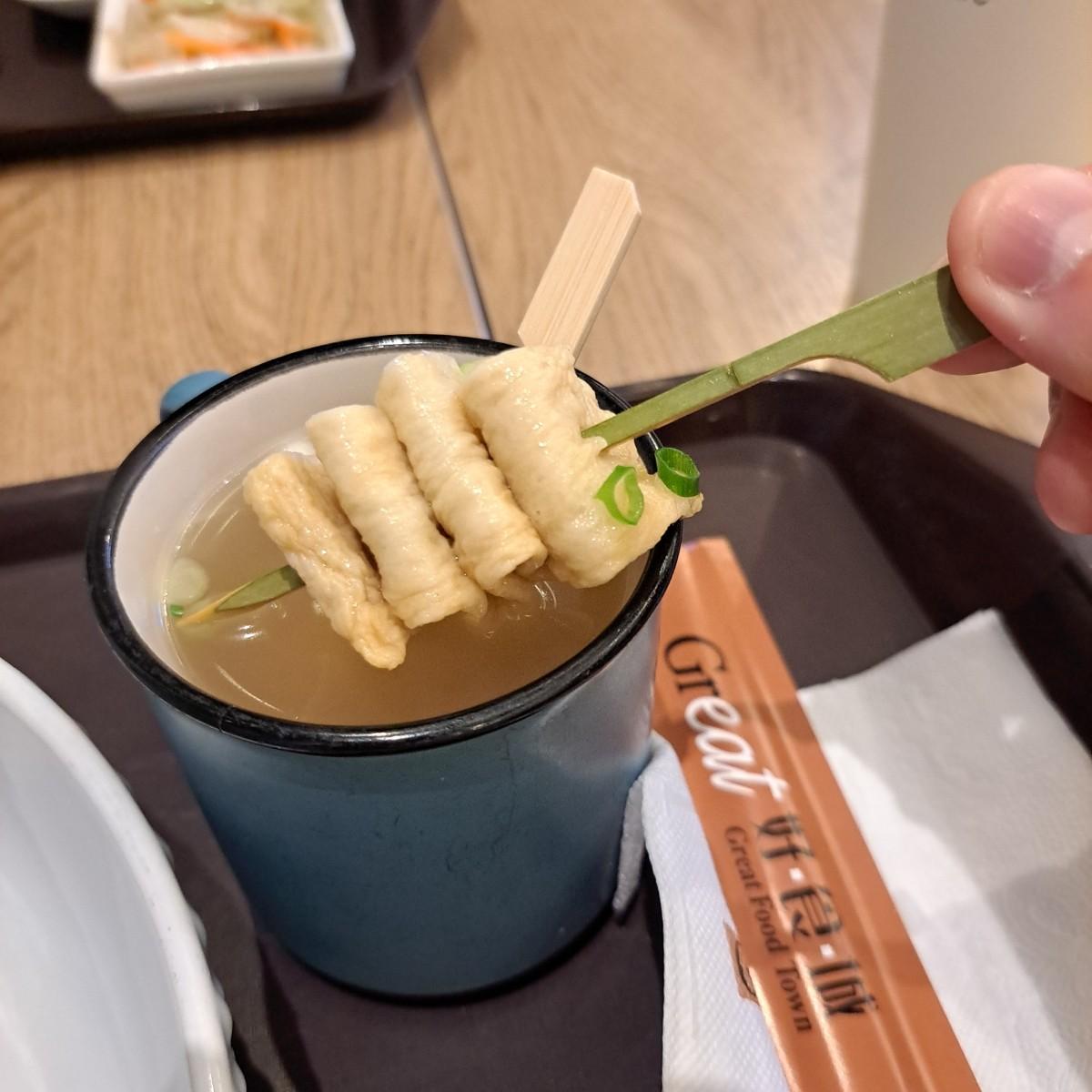 魚板湯溫暖順口,魚板差不多一口一個,軟軟的和台式魚板那種咬勁不同,也是好吃!不想要泡菜的也可以考慮直接單點魚板湯(60元),魚板量會多上不少。