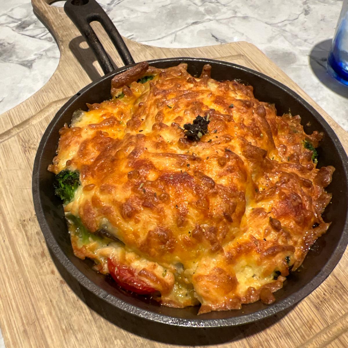 -這個是今天最好吃的!起司超香,每層麵皮都吸滿奶油醬,濃郁但不會膩。裡面菇菇很多,口感很實在!!加上九層塔的味道,整體吃起來超加分。