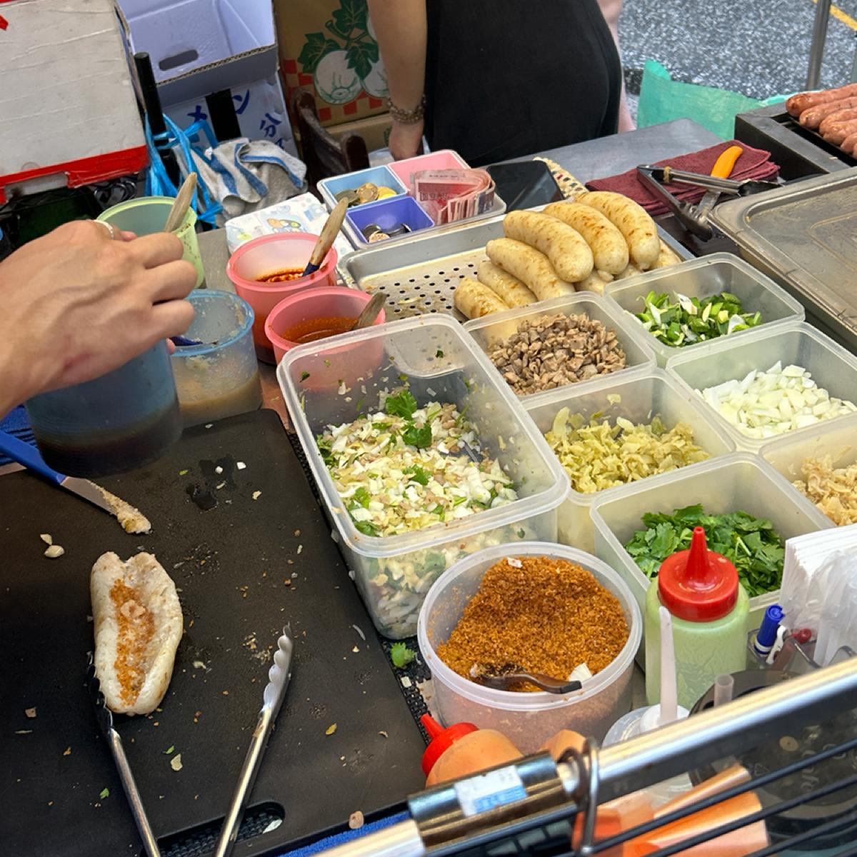 每份大腸包小腸都會添加滿滿的配料,包括蒜苗、洋蔥、薑、酸菜、菜脯、香菜。有不吃的食材要記得先告知!!我全部都很愛,所以全部都有加!全部的配料都加進去真的超讚!香腸烤的很juicy ,米腸也烤的恰到好處,完全不乾!重點是配料給的超滿超有誠意,讓你吃到的每一口都是驚喜,一捲70元我真的很能接受。