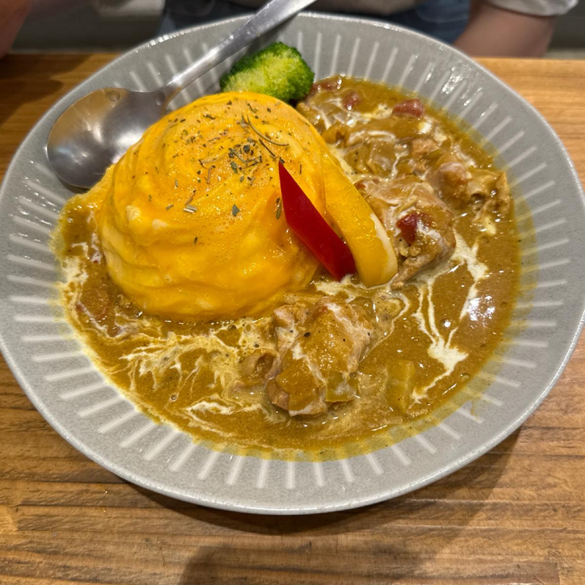 顯得溫潤許多,是我心中的招牌首選。雞肉煮得非常軟嫩不柴,咖哩帶著自然的豆奶香氣與細膩甜味,口感濃而不膩,超級下飯。搭配上滑嫩的歐姆蛋更是加分,不只讓咖哩口感更濕潤,視覺與味覺也更加豐富!