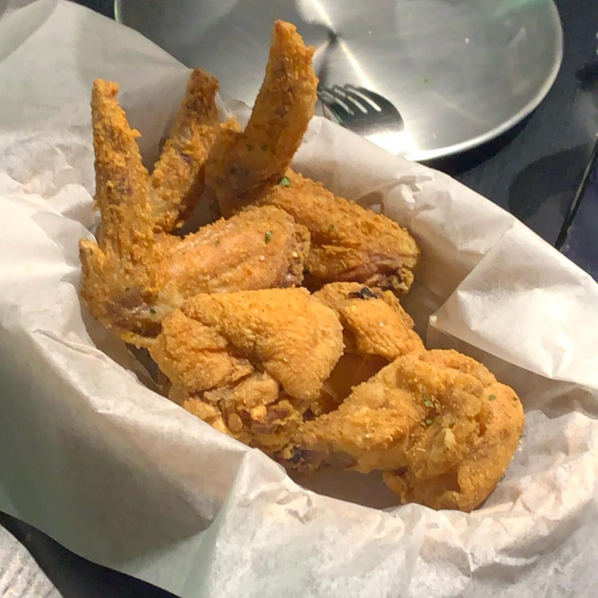 今天我們2大1小直接選雙人餐,有一個12吋pizza+一份炸物+二杯飲料,我們還單點一份炸雞翅,披薩口味選了女兒愛的阿羅哈(=夏威夷)跟牛森林。因為披薩是現做所以要等一陣子,但薯條🍟跟雞翅🍗蠻快就上菜,可以先墊墊胃。