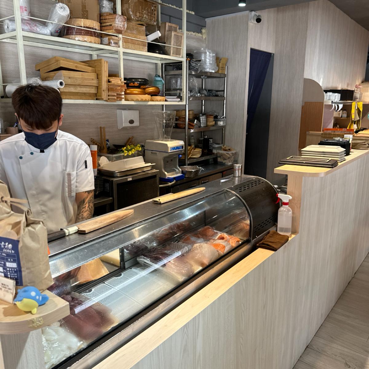 用餐空間蠻乾淨的,門口可以看到店家使用的是日本米,冷藏櫃也有多種生魚肉。