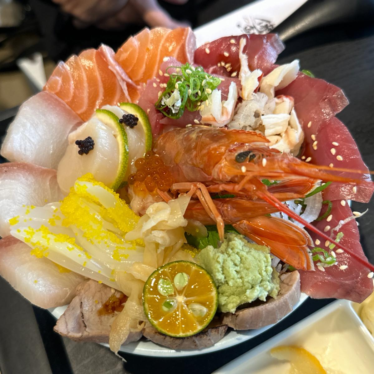 朋友點的極上生魚片丼,看起來很豐盛,中間的大蝦視覺上更是碩大美味,但我吃了一口發現也有腥味…蝦頭的部分味道更重,最後完全不敢吸頭。朋友表示生魚片裡的鮪魚也有腥味,ok看來真的是今天這批鮪魚有問題。