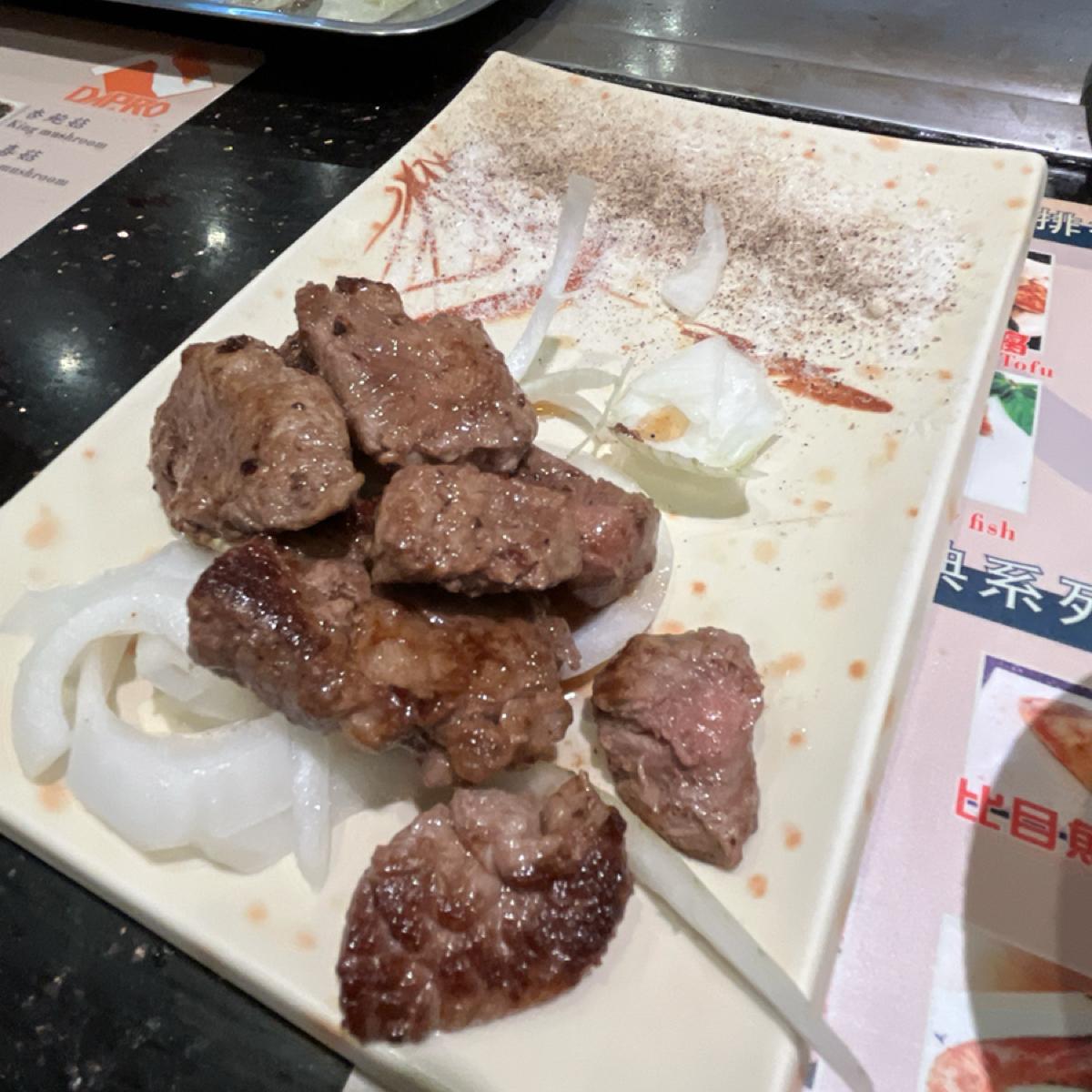 在餐點的部分點了沙朗牛排,原本期待是可以吃出鐵板有的那種鮮甜味,不過食材的肉質本身沒有到很好,加上炒的師父功夫也差滿多的。所以在前半段吃到的鐵板燒其實是有點小失望的。不過我後來續菜換了一個師父炒之後,就好的非常多。
