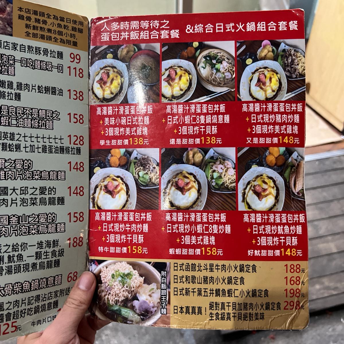 包含豚骨拉麵、唐揚雞、小菜和一顆布丁🍮
