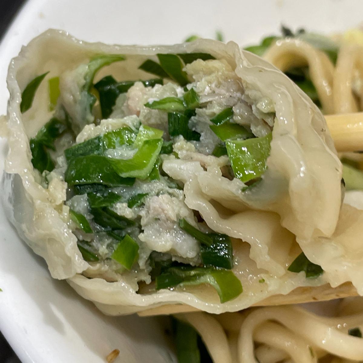 水餃皮真的很薄,夾起來很容易就破掉,內餡豬肉非常的鮮甜,高麗菜的菜是用手撕的,吃得到清脆口感。韭菜則非常的濃郁,是我近期吃過最好吃的水餃!