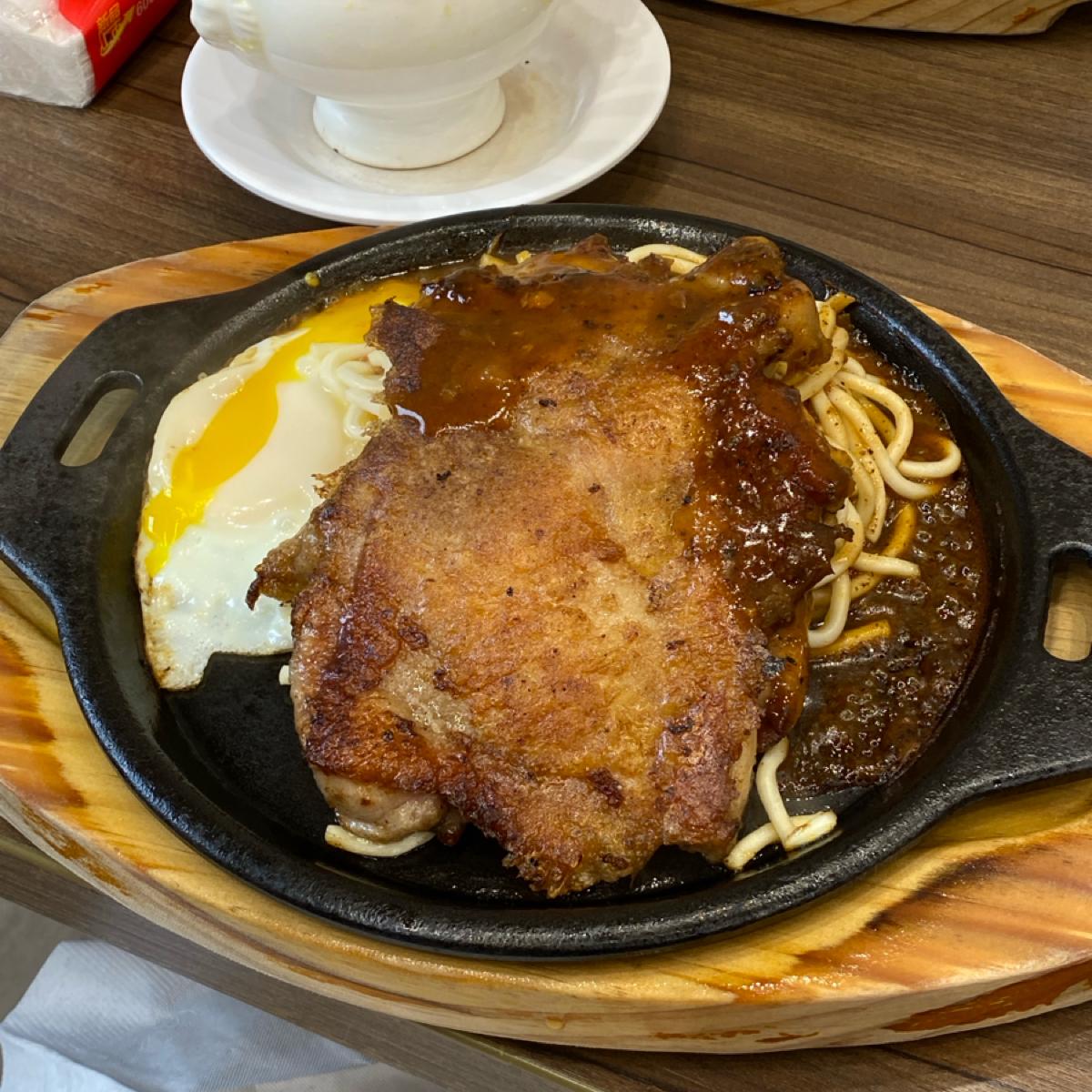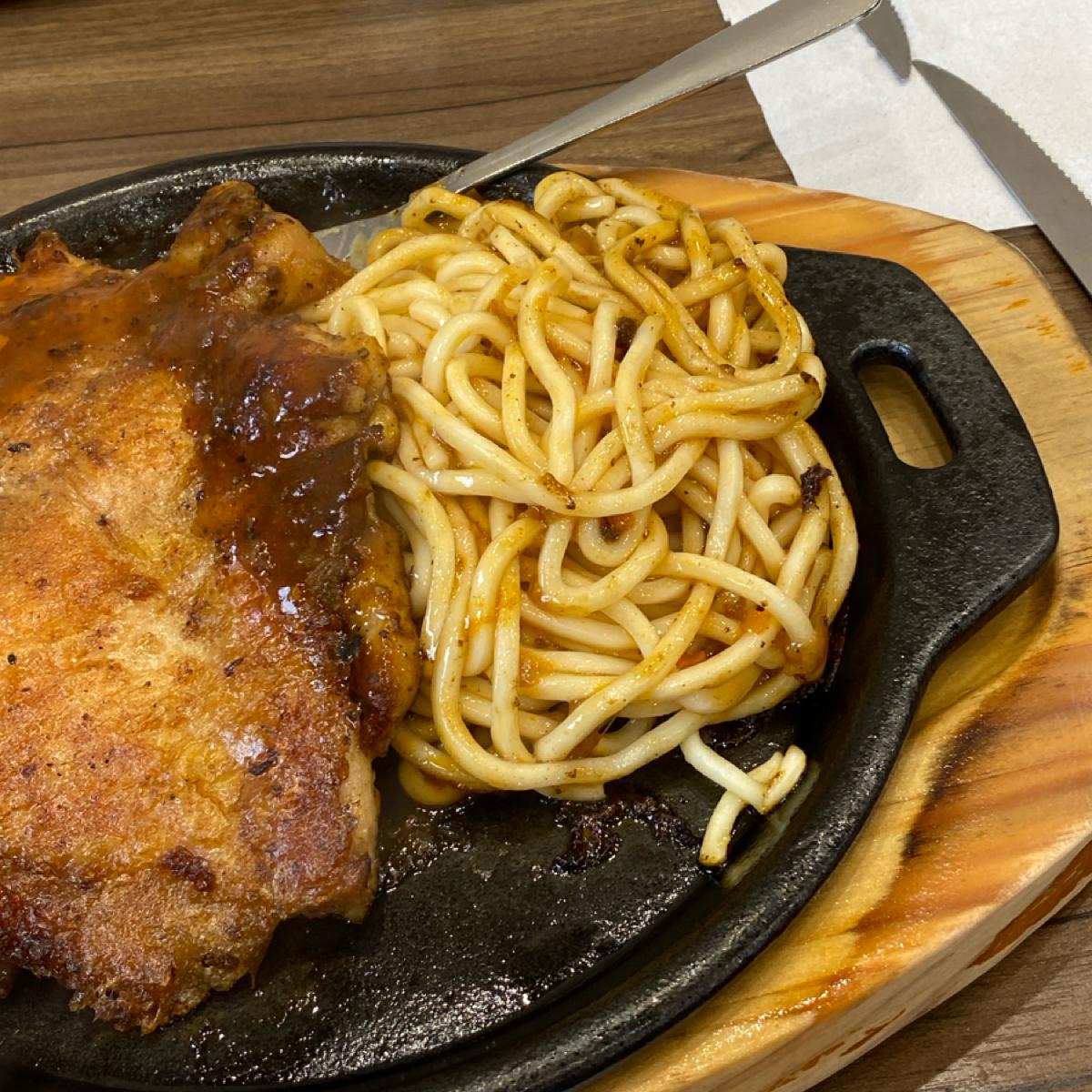 這家店一開始最讓我覺得特別的是,他的玉米濃湯有酥皮!😂湯就是一般夜市牛排會喝到的湯(不會難喝)但搭配酥皮整個很加分。每次都是點雞腿排,會把皮煎的脆脆(但淋醬厚會軟掉)雞排蠻大塊,厚度還可以,口味我都習慣選綜合(黑胡椒+蘑菇)的,鐵板麵份量不少,跟一顆蛋,如果不要麵可以換蛋。牛排是家人點的,我比較少吃就不評價。