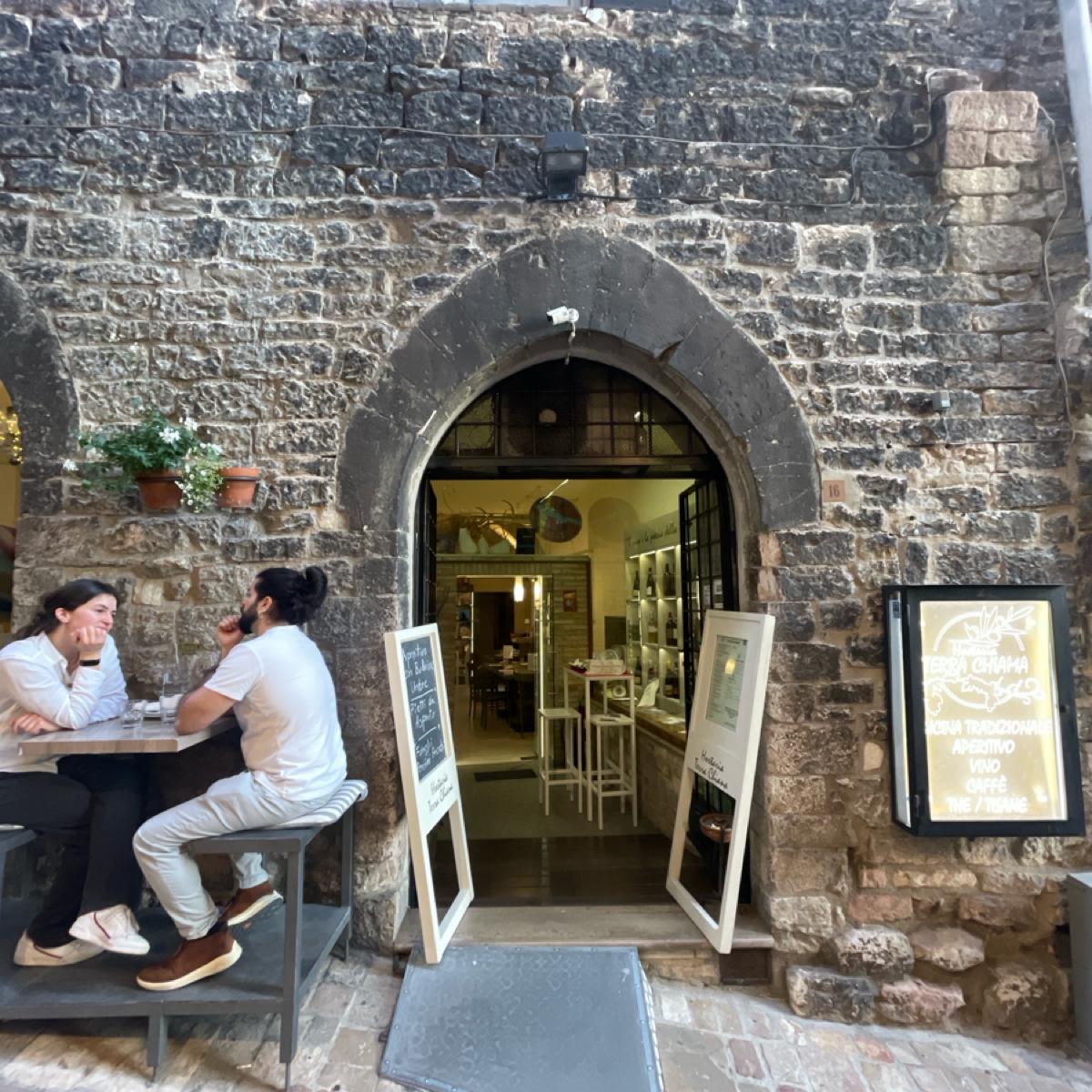 我們本來要去吃一家米其林餐盤的餐廳,殊不知剛好遇到它的公休日,所以我們最隨便在路邊找Google評論高分的餐廳,這家「Hostaria Terra Chiama」有4.5星,就給它一個機會