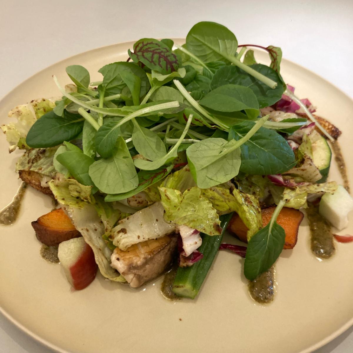 Lit Lit沙拉是最喜歡的一道,有很多種菜,不只有生菜,還有熱的節瓜、玉米筍、杏鮑菇、白花椰菜,也有芭樂和蓮霧等水果,非常豐富。