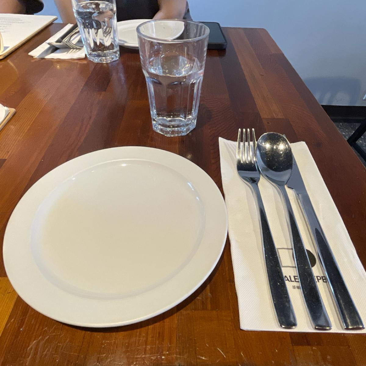 服務人員都蠻有禮貌,點餐前先介紹菜單並建議我們點多少數量的餐,第一次吃到換小盤這麼頻繁的義大利麵餐廳,大概換了2-3次?一直有乾淨的盤子讓食物味道不會影響餐點彼此還蠻好的,來補水的次數也蠻頻繁。當天五位用餐,來客數沒有到很多所以他們再拉了一張桌子椅子讓我們使用空間更大一點,很貼心。