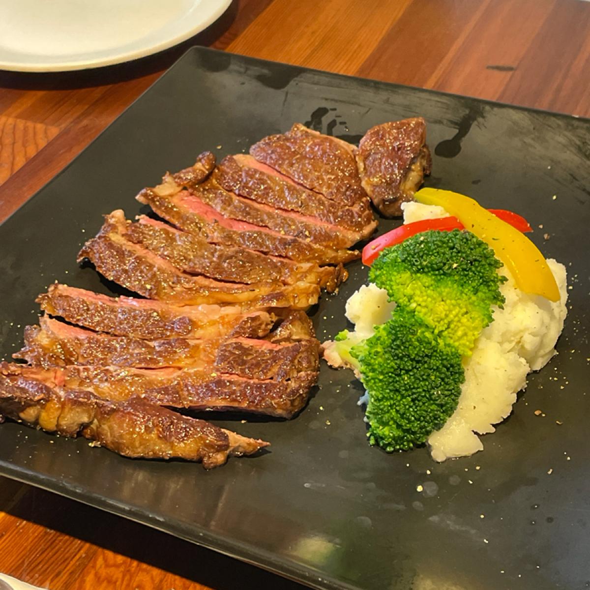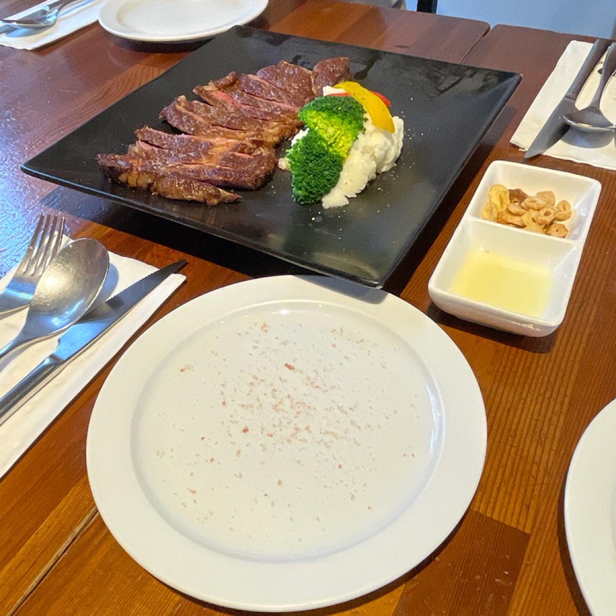 紐西蘭肋眼牛排(10oz)及美國無骨牛小排(8oz),他們提供玫瑰鹽、蒜片搭配食用,店員推薦五分熟,吃起來覺得肋眼比想像熟一點點,吃起來比牛小排更有口感,我比較喜歡牛小排吃起來比較軟嫩。