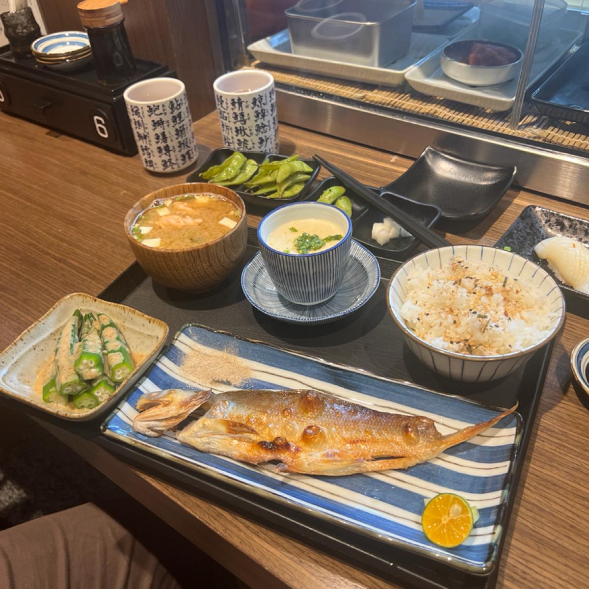 午仔魚定食 $280(包含主菜、白飯、茶碗蒸、味噌湯和小菜)