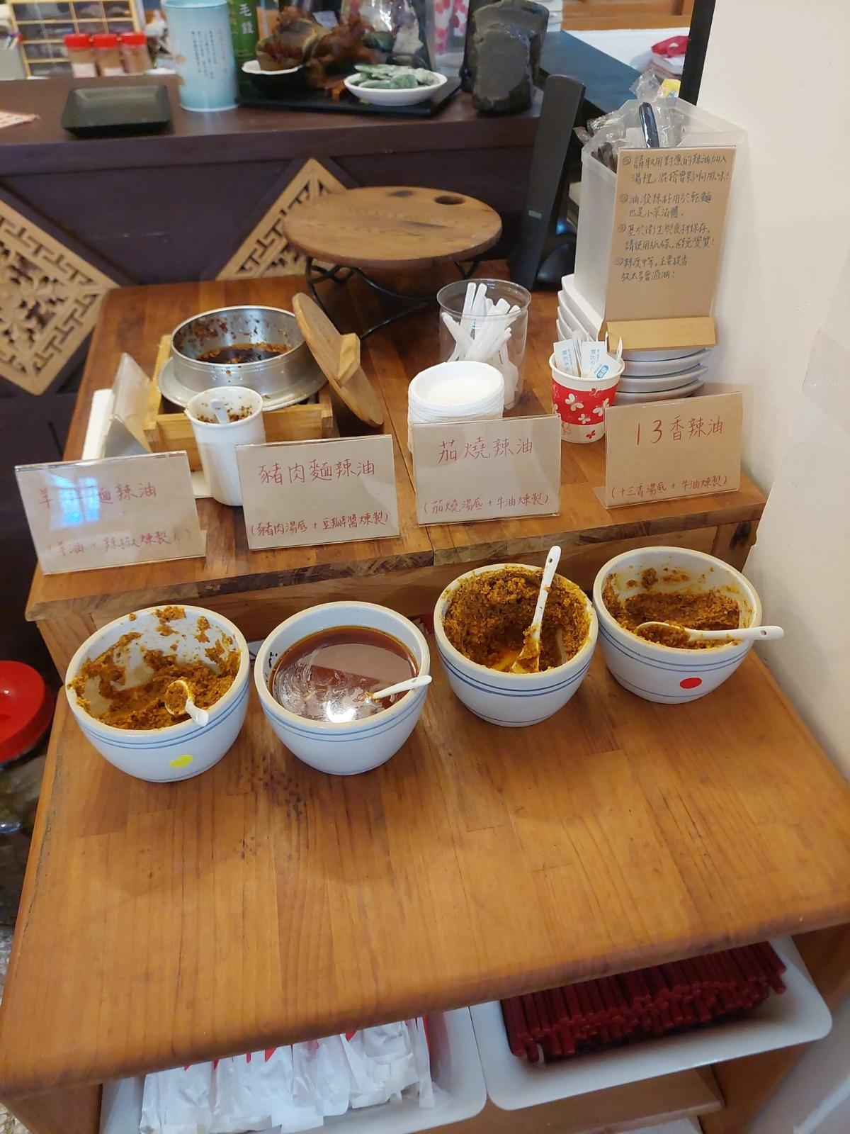 店內常備四種口味的辣油,可以隨著個人喜好添加。