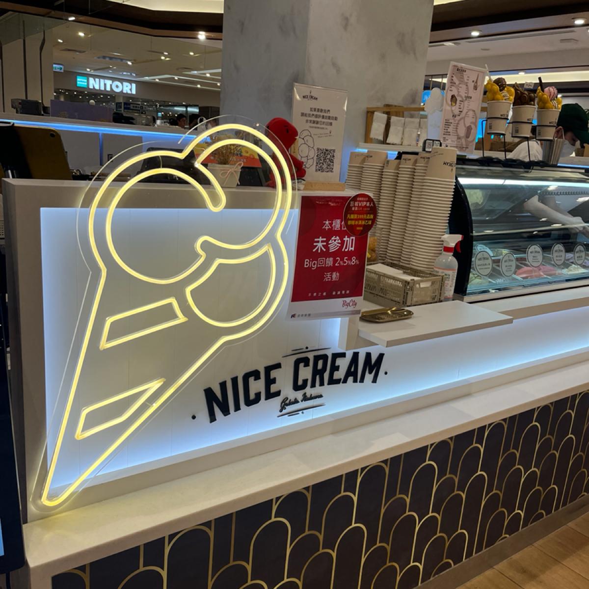 位於新竹巨城 B1 的 Nice Cream 巨城店,是一間讓人吃完會想立刻再訪的義式冰淇淋(gelato)專賣店。雖然名稱與台北的 Nice Cream 相同,但好像是不同經營團隊,兩邊的集點卡不通用,