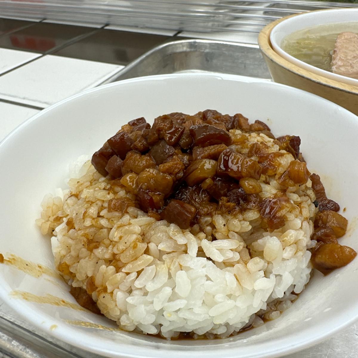 只要有點湯就可以以10元加購魯肉飯,份量不算小。一入口就有濃濃的白胡椒味,看不出來有灑白胡椒,應該是滷的時候就加進去了,我沒有那麼喜歡那麼重的白胡椒味,魯汁鹹中只帶一點點微甜,覺得魯汁不夠還可以續,不過原本給的量就很足了,再多加會太鹹。