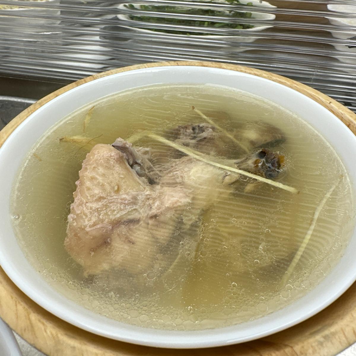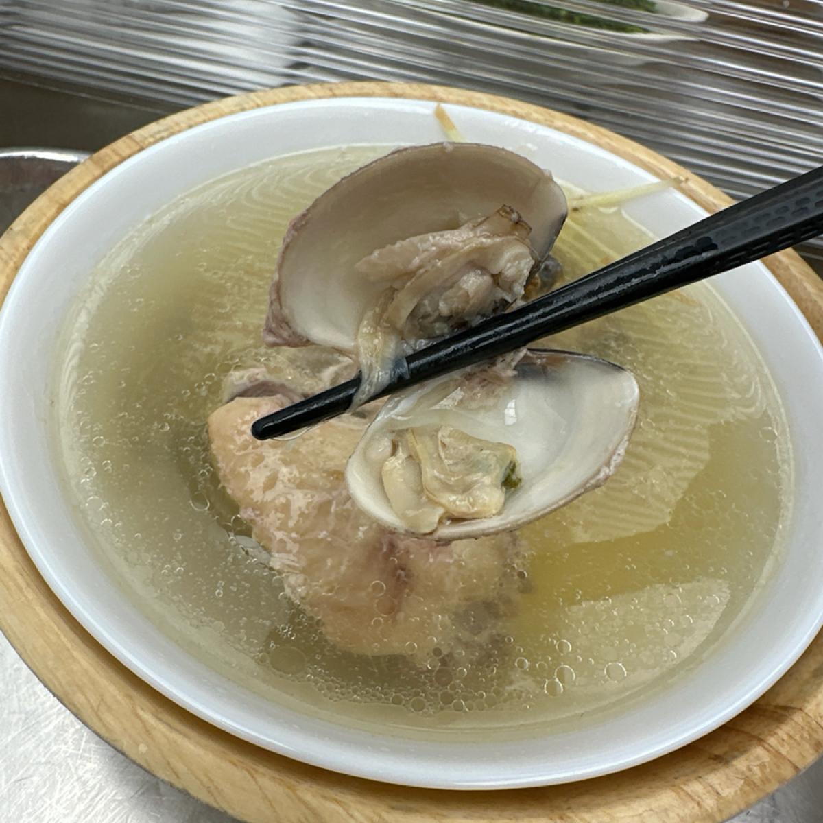 雞肉在湯裡面燉煮了很久,所有精華都融在湯裡了,雞肉的口感就沒有那麼好了,但蛤蜊看起來也是在湯裡燉了很久,蛤蜊肉變的糊糊爛爛的,雖然沒有什麼奇怪的腥味,但還真沒看過有這樣的煮法,一般都是最後才加蛤蜊,蛤蜊煮開了就上桌。喜歡多喝點湯的話,可以免費加高湯。