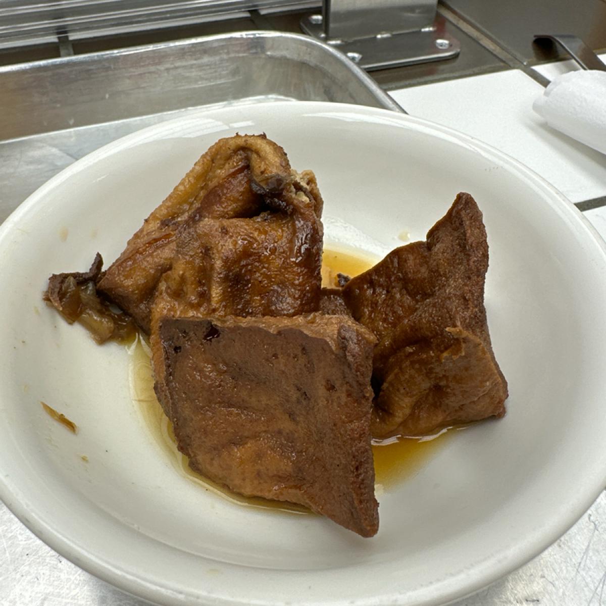 四塊才20元,可是口感很奇怪,不知道是不是滷太久,外皮吃起來有點韌,每一塊的鹹度也不一樣,有點踩雷了。