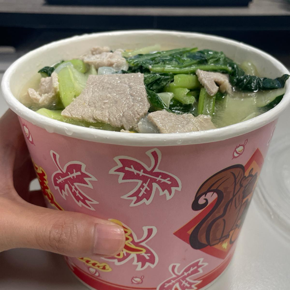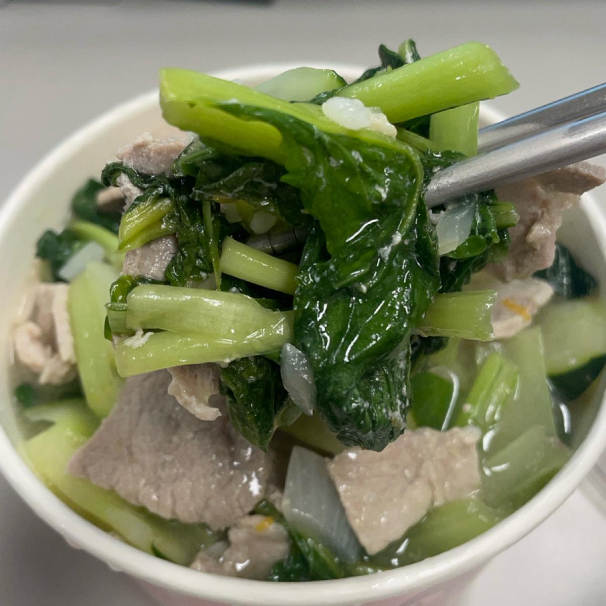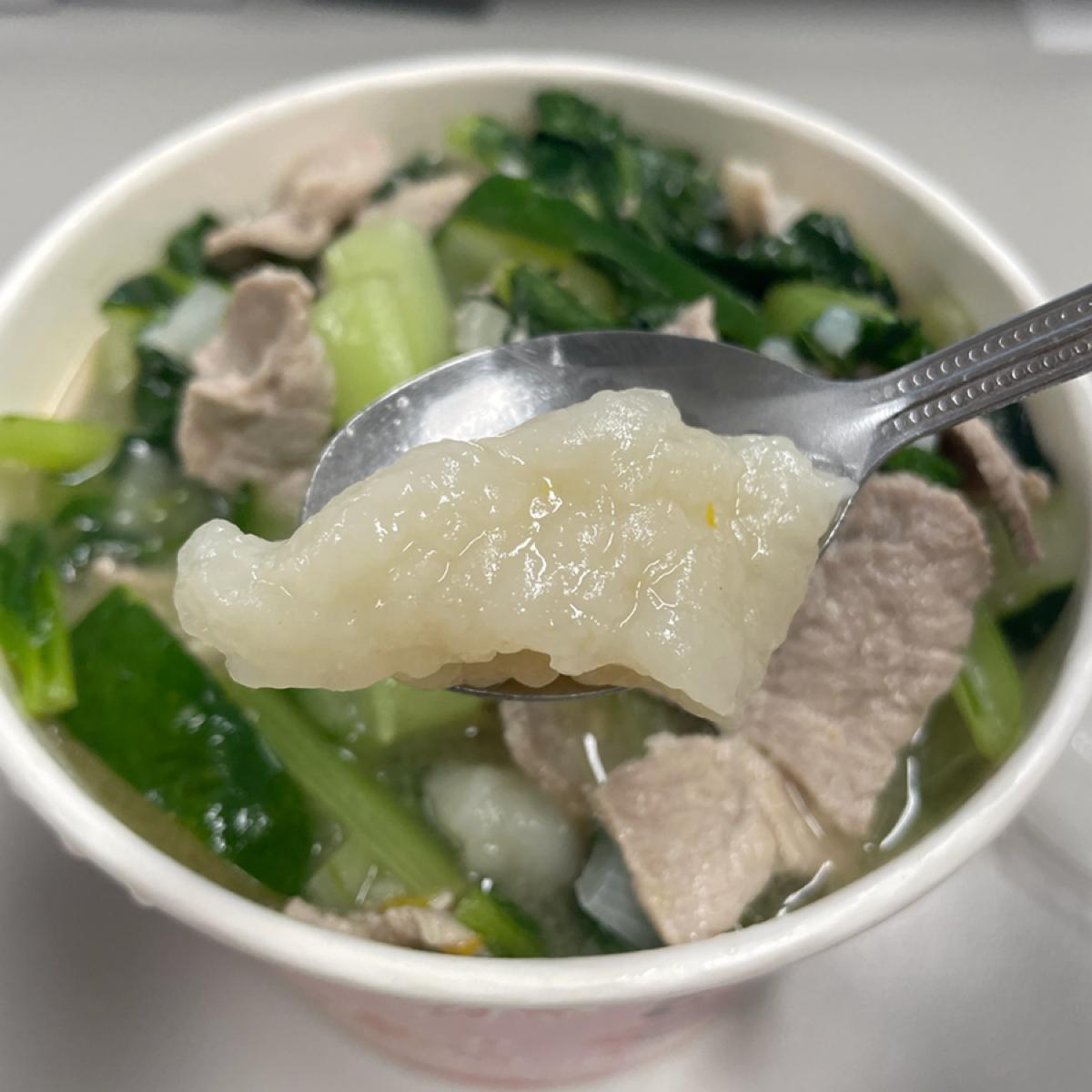 當然還有豬肉片,吃起來主要都是瘦肉,比較硬一點,但沒有奇怪的肉腥味;揪片都是在碗的下層,要特別把湯匙往下面撈才會撈到,不然就要先把上層的青菜們吃一吃